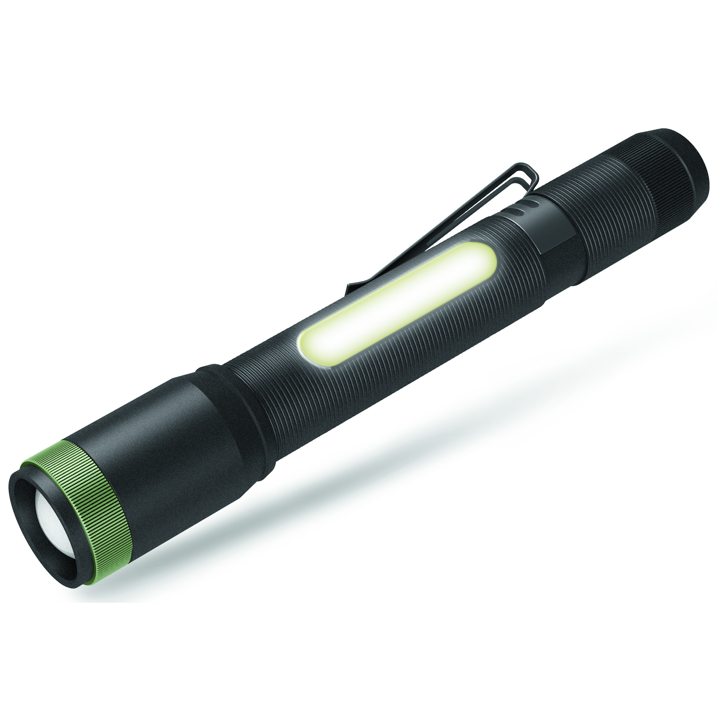 En robust, laddningsbar ficklampa med bra grepp och tåligt, anodiserat aluminiumhus. Två ljuslägen och ett SOS-läge. Vattentålig konstruktion (IPX7). Ljusstyrka 650 lumen. 40 timmars brinntid. Ljuslängd: 135 m. Drivs med 1 st laddningsbart litiumjonbatteri (medföljer).