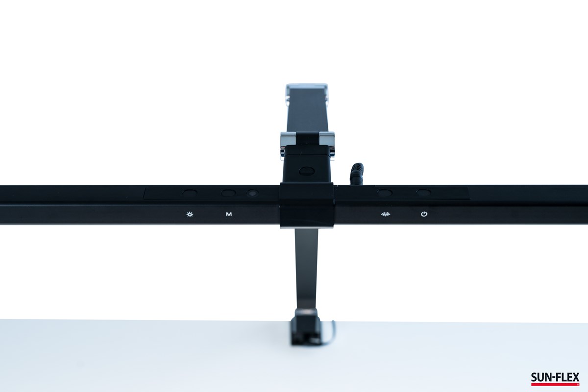 En toppmodern armatur som kännetecknas av stor flexibilitet i inställningar och modern design med fantastiska ljusegenskaper. Det breda lamphuvudet på 80 cm är utrustat med touchkontroller för steglös ljusdimmer, färgtemperatur, antireflexfunktion och automatisk omgivningsanpassad ljusstyrka. Tack vare det breda lamphuvudet lyser den upp din arbetsplats utan hjälp av takarmatur eller punktbelysningar. Klämfäste.