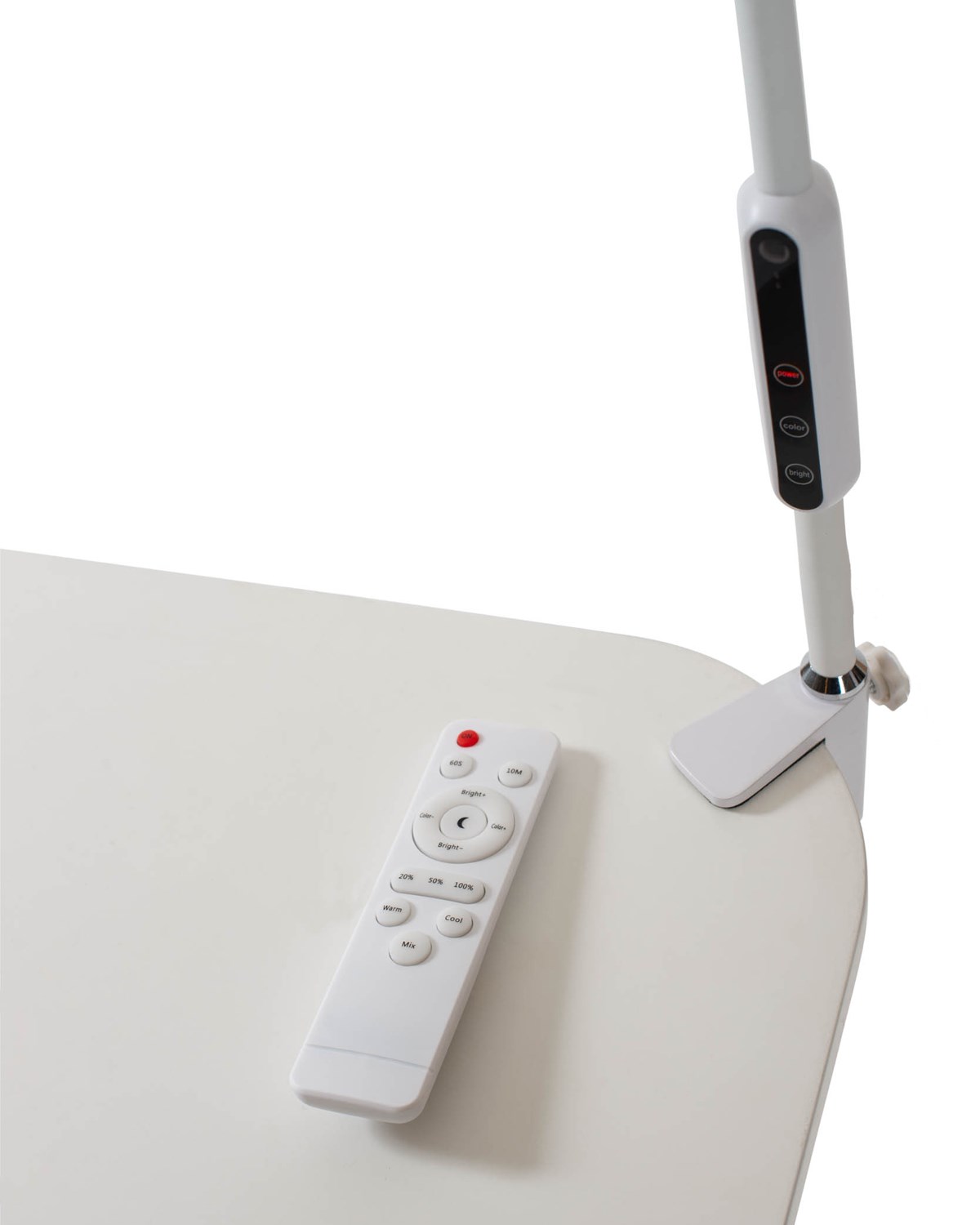Lampans långa arm gör det enkelt att positionera ljuset där man önskar. Dimmerfunktion, färgtemperaturjustering och automatisk avstängning. Hanteras via touchkontroll eller via den medföljande fjärrkontrollen. 9 W LED. Längd: 1130 mm.
