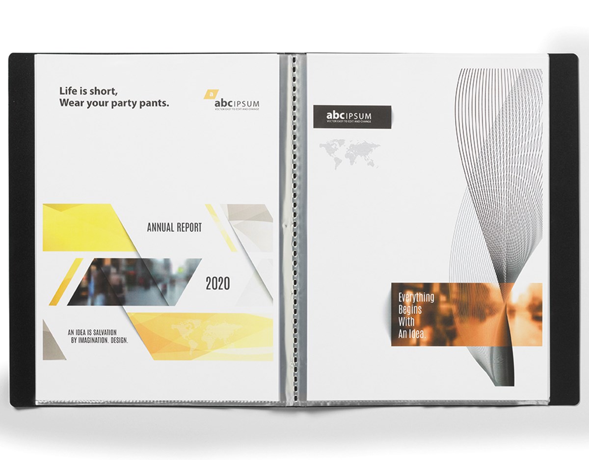 Demonstrations- och presentationspärm i polypropylen med fastsvetsade kopiesäkra fickor för A4. Istoppsficka på ryggen med instick för uppmärkning. Svart.
