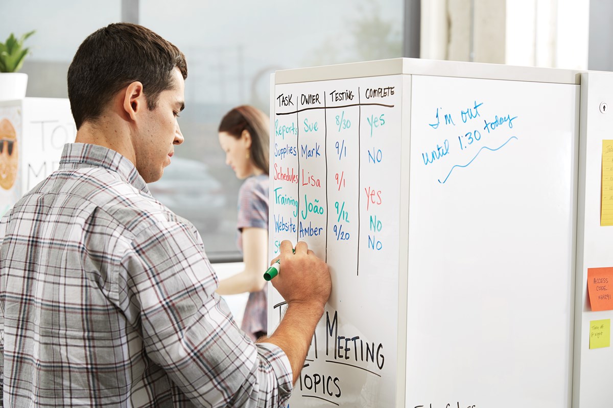 Förvandlar snabbt vilken arbetsyta som helst till en whiteboard – bara att rulla ut, dra av skyddstejpen och fäst. Använd whiteboardpennor och permanenta tuschpennor. Långsiktig planering blir enklare än någonsin med hjälp av permanent tusch där du undviker att råka kladda eller sudda. Permanent tusch torkas enkelt av med vatten. Fäster ordentligt och håller sig kvar på jämna ytor som målade gipsväggar, behandlat trä, glas, lackerat stål, whiteboardtavlor och svarta tavlor. Filmen är perfekt att reparera gamla och förstörda WB-tavlor med.