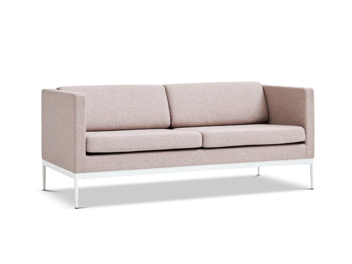 Bekväm 3-sitssoffa med låg rygg, rejält kallskum och fjäderbotten. Passar lounger, väntrum, lunchrum och möten där man sitter lågt. Pulverlackat metallunderrede i vitt. Grått tyg, ecowool. Mått: H73 x B180 x D80 cm. Sitthöjd 44 cm.