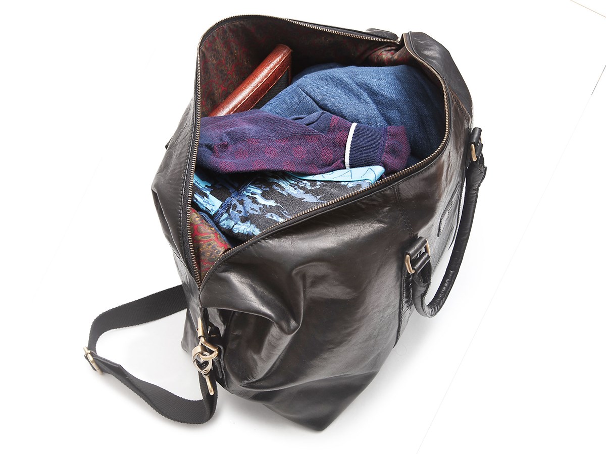 Weekendväska i läder med handtag och smidig axelrem i textil med insydda skinndetaljer. Smarta förvaringslösningar på insidan och ett yttre fack med dragkedja på utsidan för säker och lättåtkomlig förvaring. Insidan har smarta fack med och utan dragkedja. Mått: 45 x 24 x 22 cm.