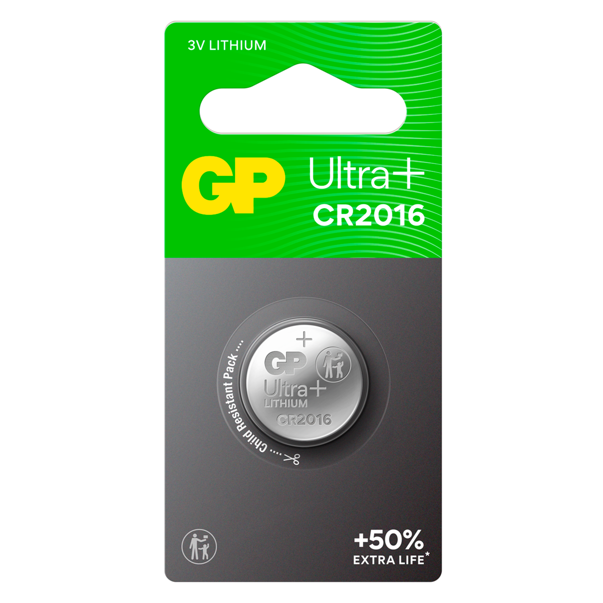 GP Ultra Plus Litium-knappcellsbatterier CR2016 levererar pålitlig kraft och har upp till 50 % längre livslängd.* Speciellt anpassade för bilnycklar säkerställer dessa batterier pålitlig funktion och lång räckvidd vid upplåsning. Avancerad försegling minimerar självurladdning och förhindrar läckage. Byggda för hållbarhet; fungerar i temperaturer från -20 °C till +60 °C. Den barnsäkra förpackningen ger extra trygghet, speciellt i hemmet.
