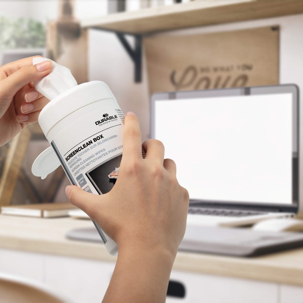 Luddfria våtdukar för rengöring av bildskärmar, bärbara datorer och glasytor på kopieringsmaskiner och skannrar. Dukarna är biologiskt nedbrytbara och har antistatisk effekt. 100 dukar/burk.