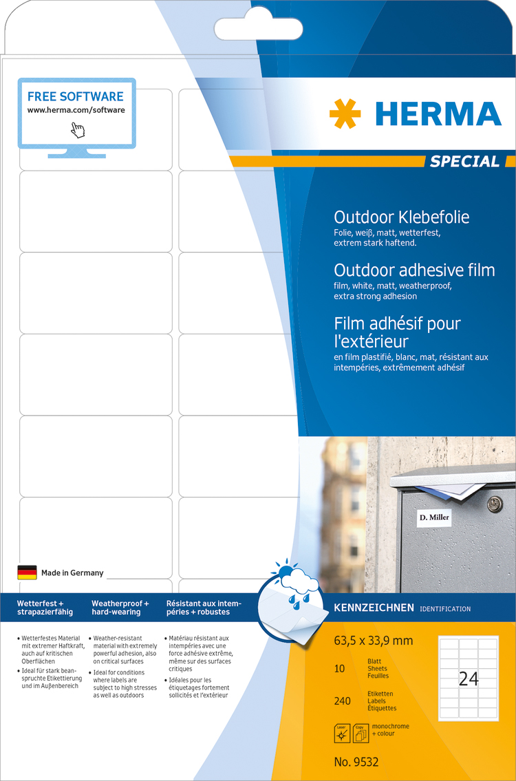 Utomhusetiketter Herma 63,5x33,9 mm 240/fp