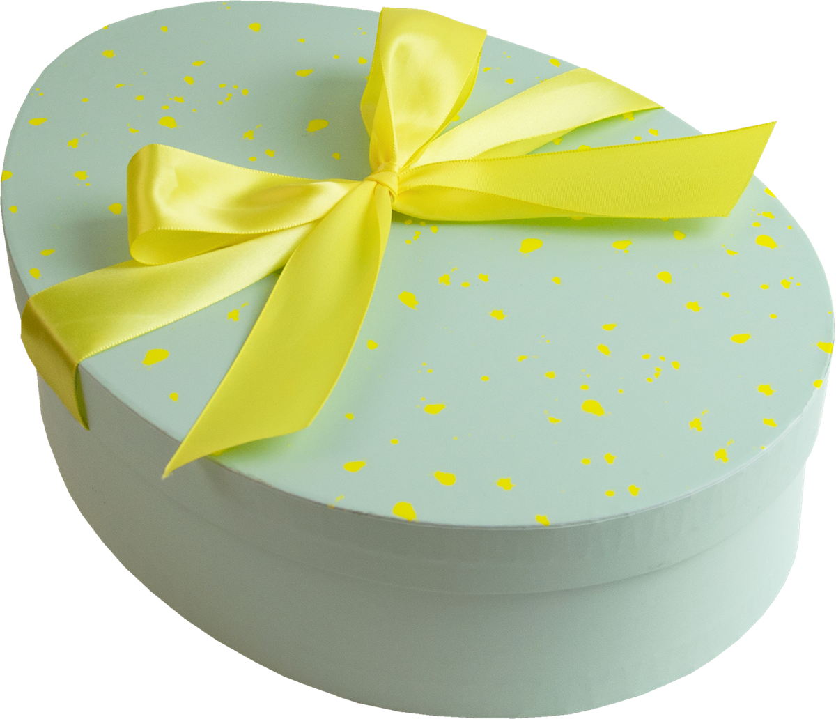 Stor påskgåva fylld med en läcker mix av lösgodis! Det ljusgröna ägget är vackert dekorerat med en stor sidenrosett. Mått: 33x7x24 cm.