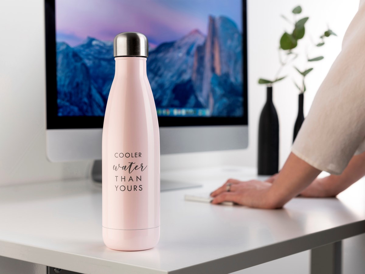 Vakuumisolerad vattenflaska gjord av högklassigt rostfritt stål. Håller din dryck kall upp till 24 timmar och varm upp till 12 timmar. Stålet i flaskan är inte magnetiskt och drar därför inte till sig smuts och partiklar, vilket gör det lättare att hålla flaskan ren. Tätslutande skruvkork med BPA-fri silikontätning. 50 cl.