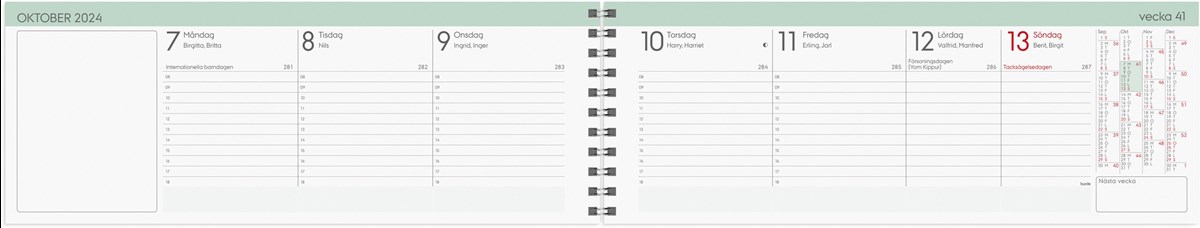Kalender 2024 från Burde. Format: 255x95 mm. Layout: Stående. Vecka/Uppslag. Timindelning 8-18. Kalendarium: 2023-12-25 - 2025-01-05. Omslag: Kartong. Spiralbunden. Innehåll: Årsöversikter, årsplaner. Antal sidor: 120. Miljöinformation: FSC.