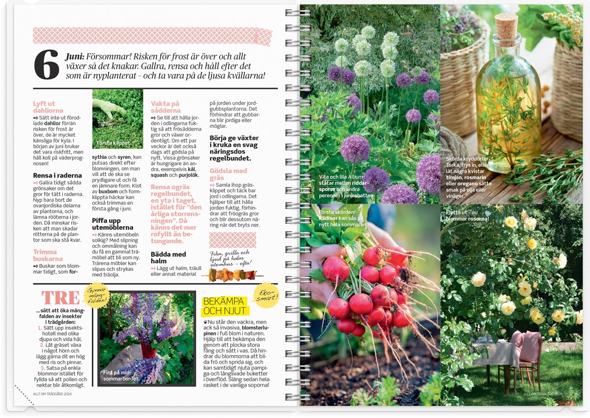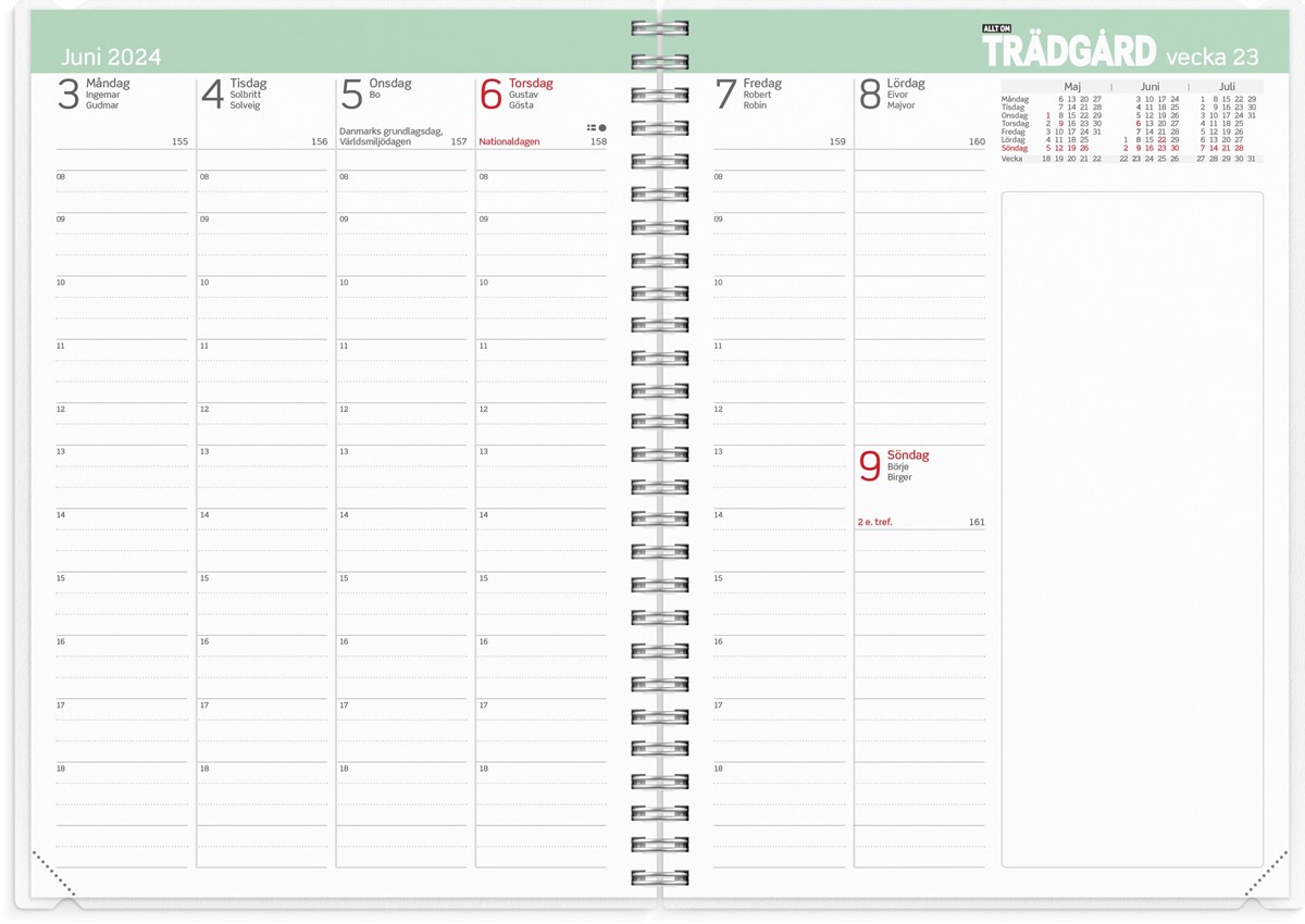 Tillsammans med tidningen Allt om Trädgård har Burde tagit fram en trädgårdskalender som hjälper dig att planera hela odlingsåret. Varje månad inleds med ett inspirerande uppslag där du får tips och påminnelser om vad som behöver göras i trädgården, därefter följer vanlig klassisk veckoplanering. Det tåliga omslaget i plast gör att du kan ha med kalendern ut i odlingarna utan att innehållet skadas av jord och vatten. Planera smart och nå dina odlingsdrömmar!
