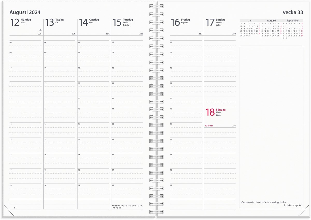Kalender med en vacker, vit framsida med ett effektfullt präglat mönster. Att ha flyt på jobbet handlar till stor del om konsten att planera. Det här är kalendern för dig som vet att arbetsdagen lätt blir hektisk och snabbt fylls på med möten och uppgifter, och vill ha bra översikt över din veckoplanering. När du vet vad som väntar varje dag blir du mer effektiv och chansen är större att du når dina karriärmål.