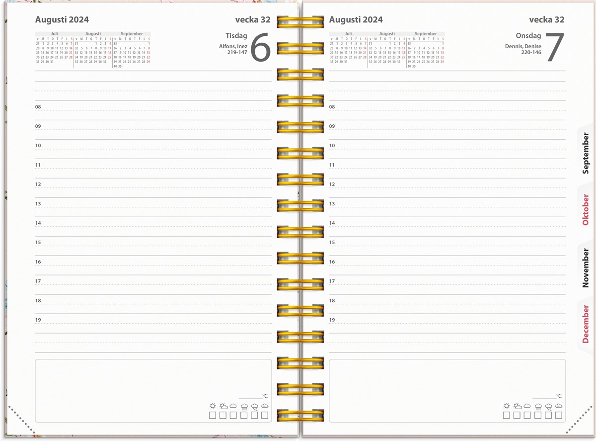 En dag per sida ger massor av plats för både planering och reflektion Urstansat månadsregister Mycket skrivyta varje dag