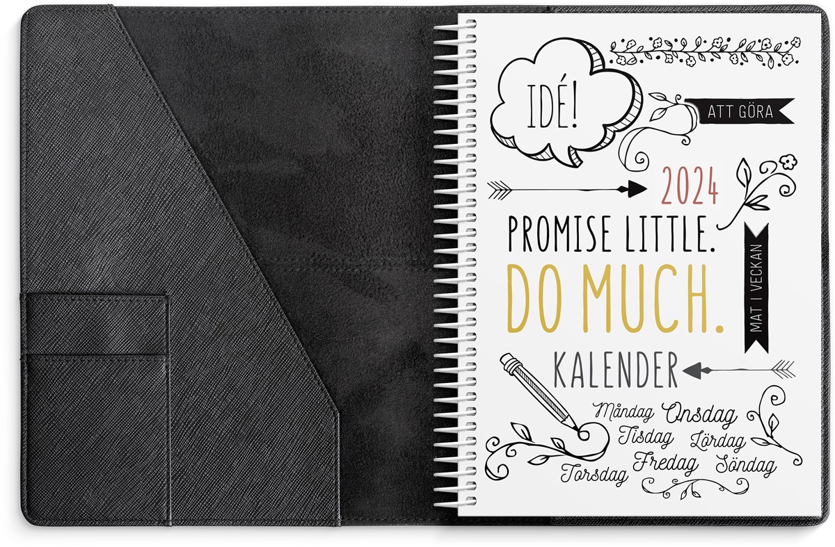 För dig som gillar att pyssla med din kalender! Skapa en personlig planering Mjukt omslag i svart konstläder skyddar din kalender på ett snyggt sätt
