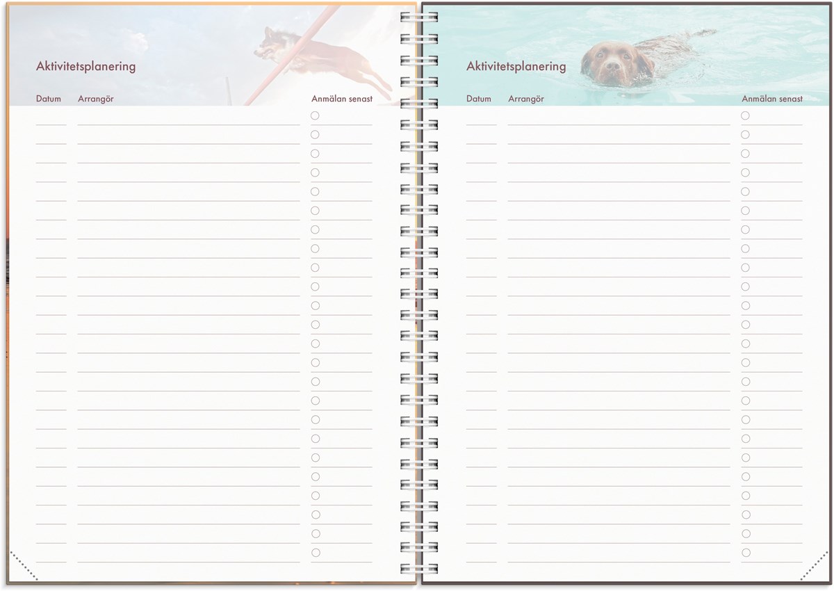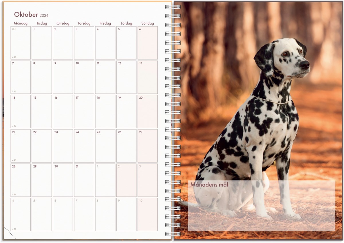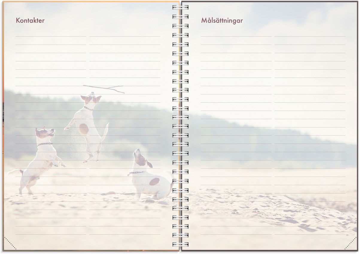 För dig som älskar hundar är en hundkalender det ultimata planeringsverktyget. Här får du utrymme att anteckna viktig information om dina hundar, kontaktuppgifter till hundtrimmare och veterinär, planera in och utvärdera tävlingar eller utställningar samt sätta mål för året. Vackra hundbilder och lekfull design gör planeringen rolig och hjälper dig att hitta tid för din passion i livet.