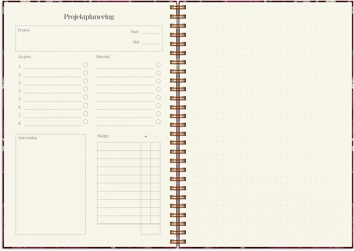 Inspireras och förverkliga dina drömmar samtidigt som du håller koll på din planering. Inlagan har cremefärgat papper och det vackert illustrerade omslaget är som en dröm i sig. Månadsöversikt varje kvartal med checklista och anteckningsyta.