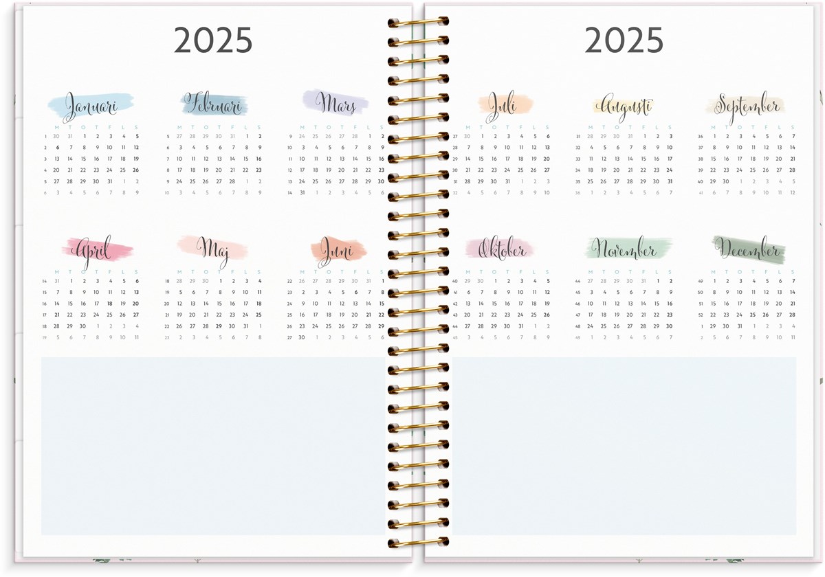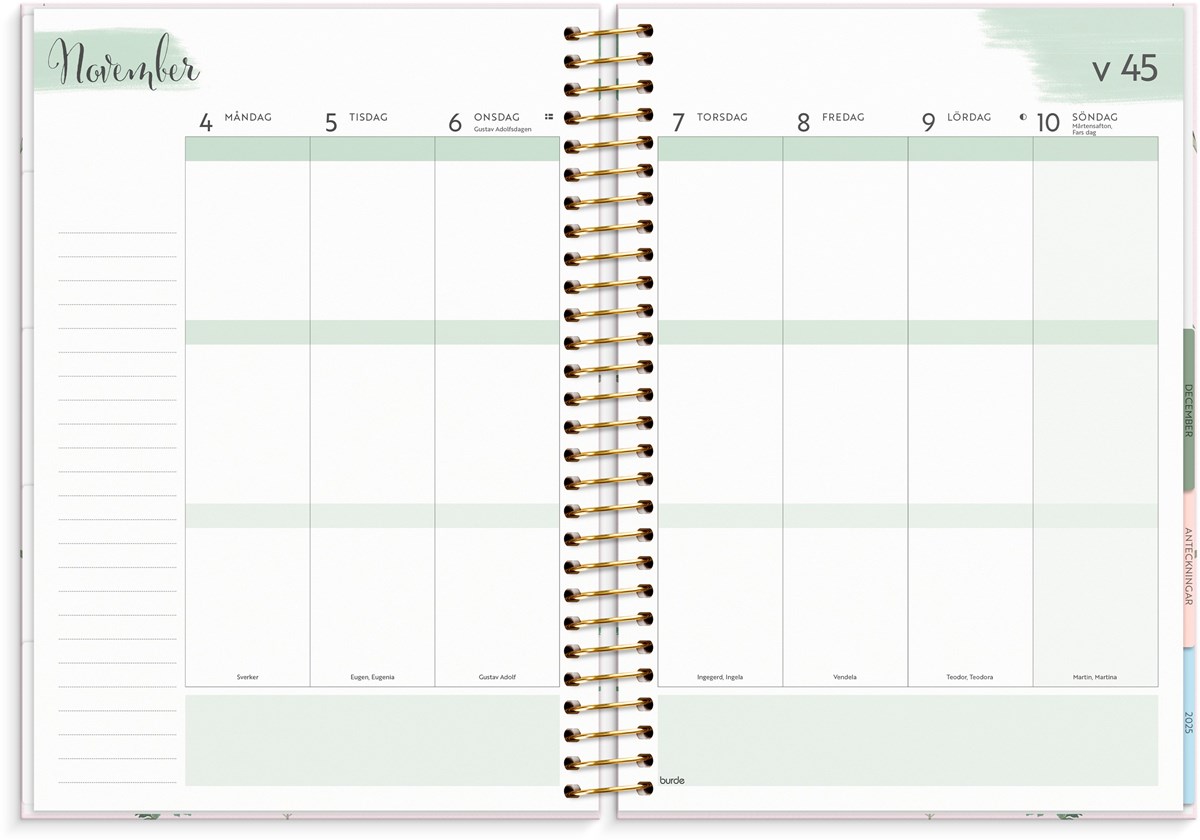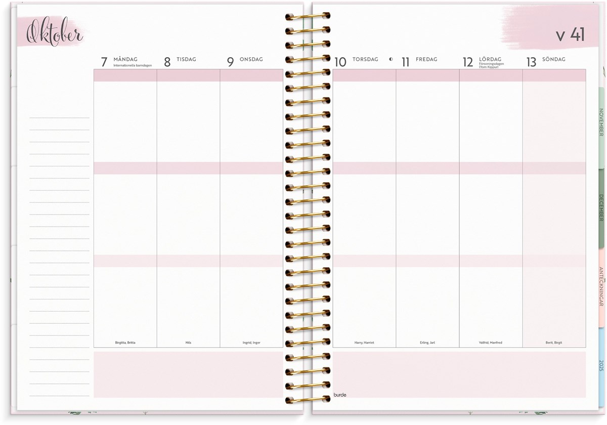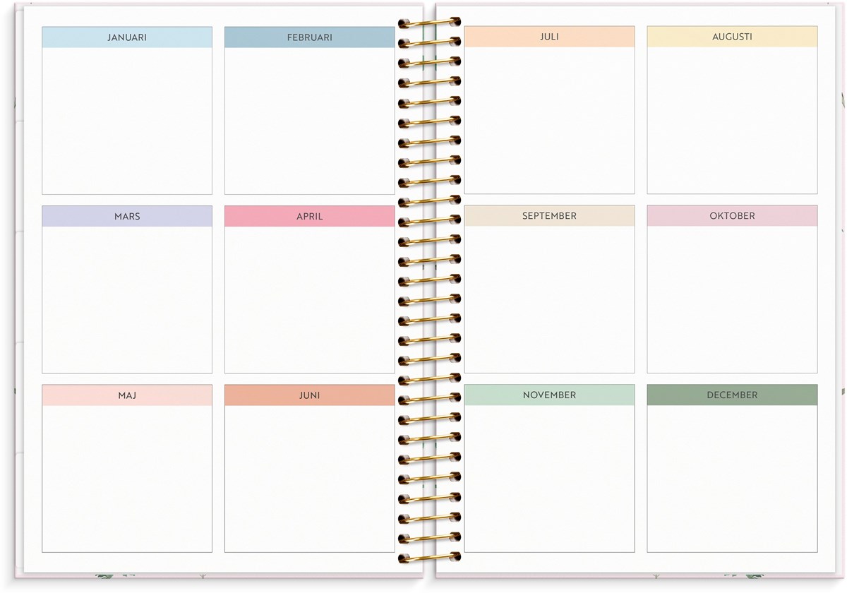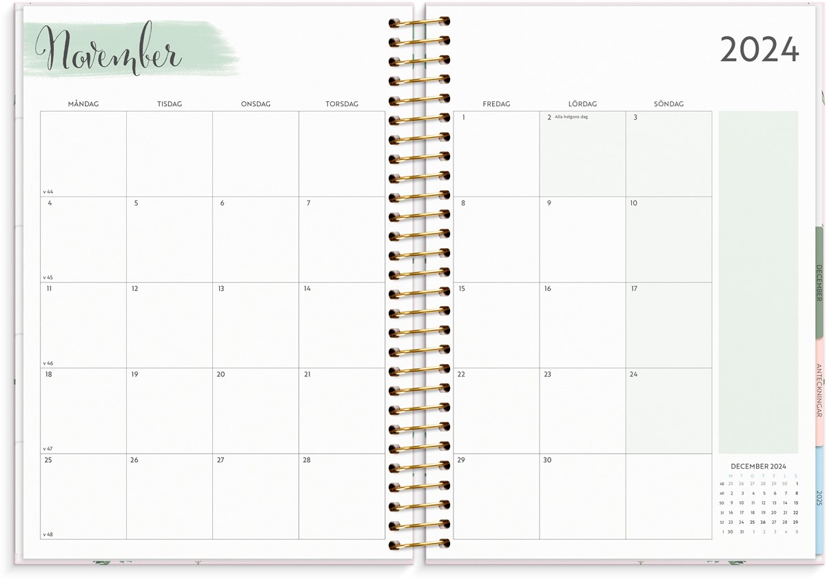 Stort format med mycket utrymme Ha med dig ditt liv överallt Färgkodade månadsflikar - lättare att hitta