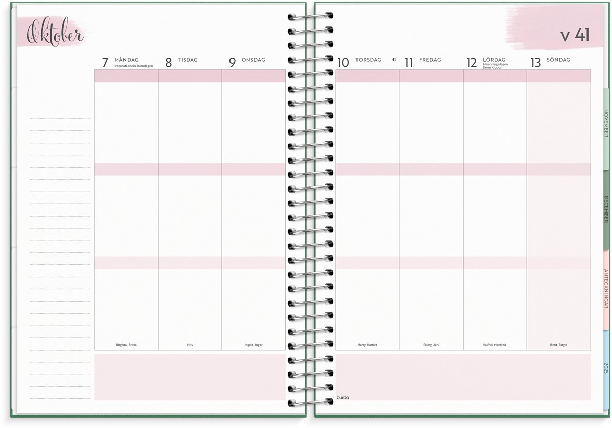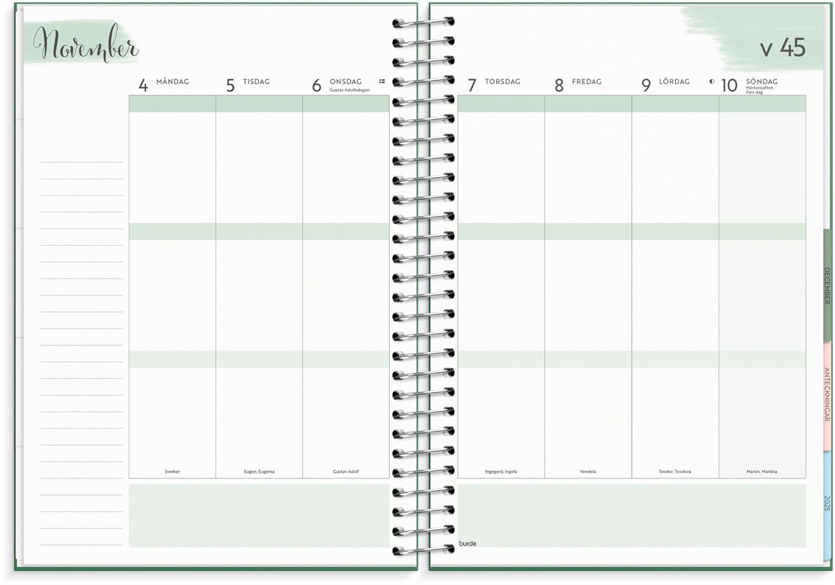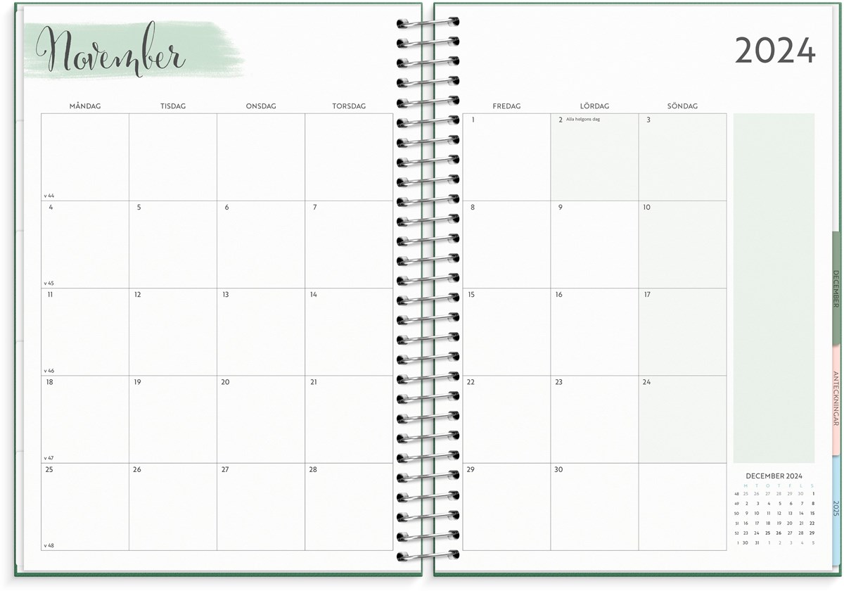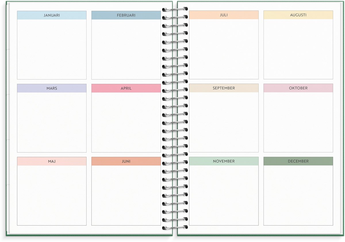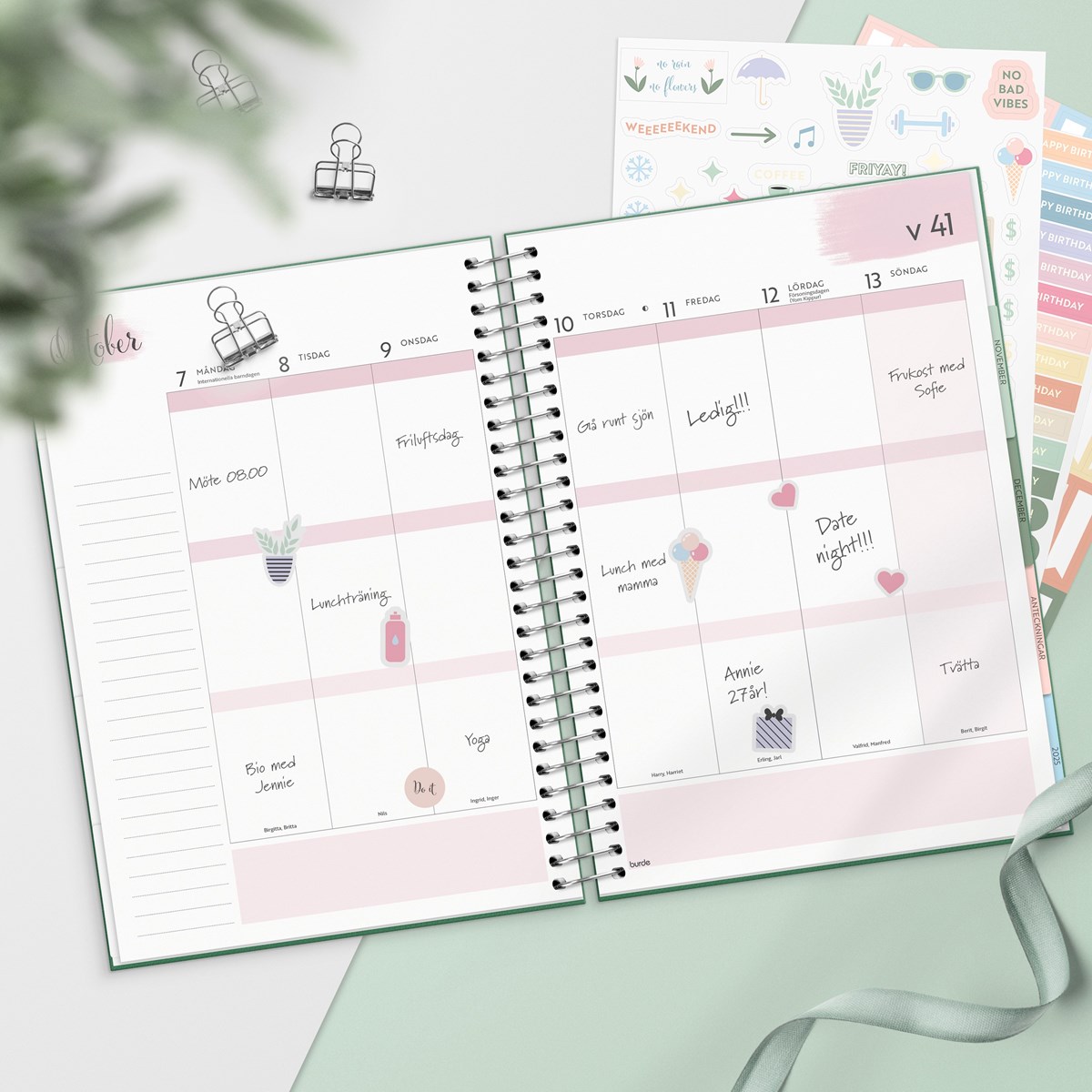 Stort format med mycket utrymme Ha med dig ditt liv överallt Färgkodade månadsflikar - lättare att hitta