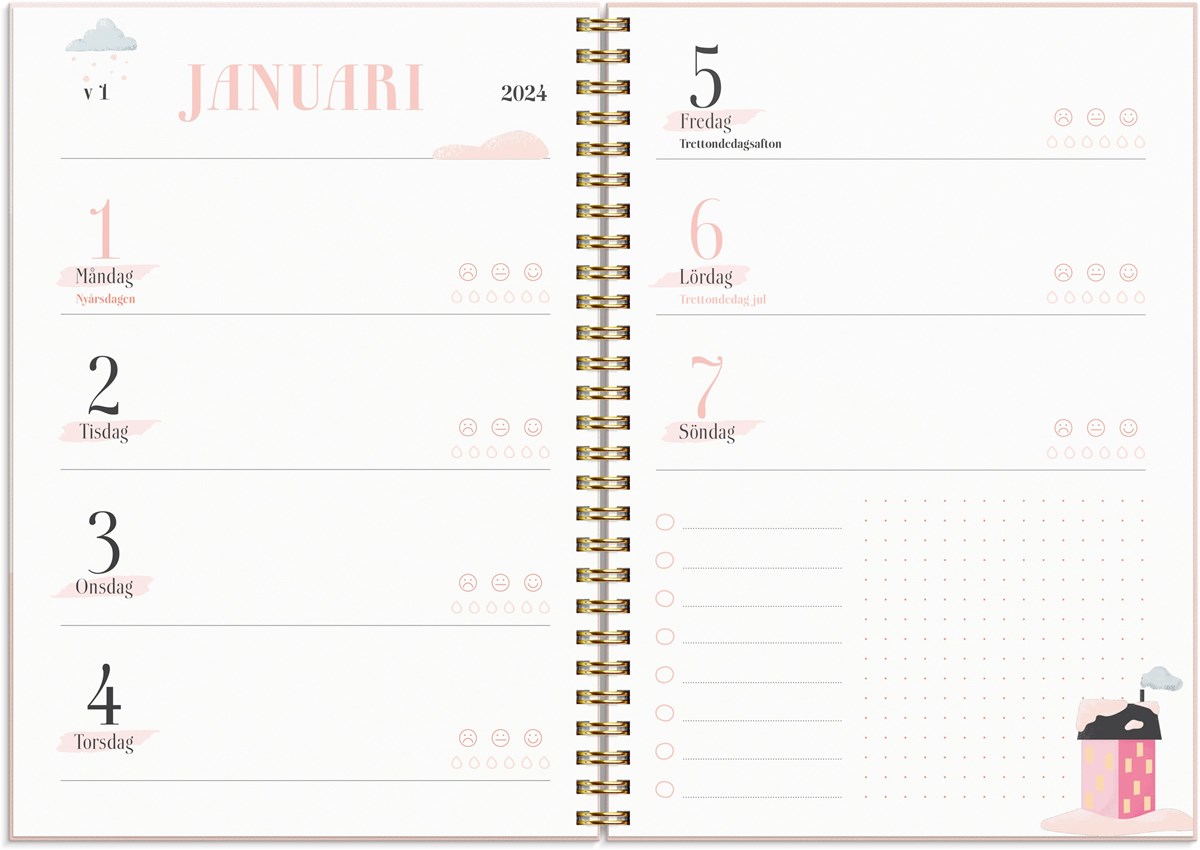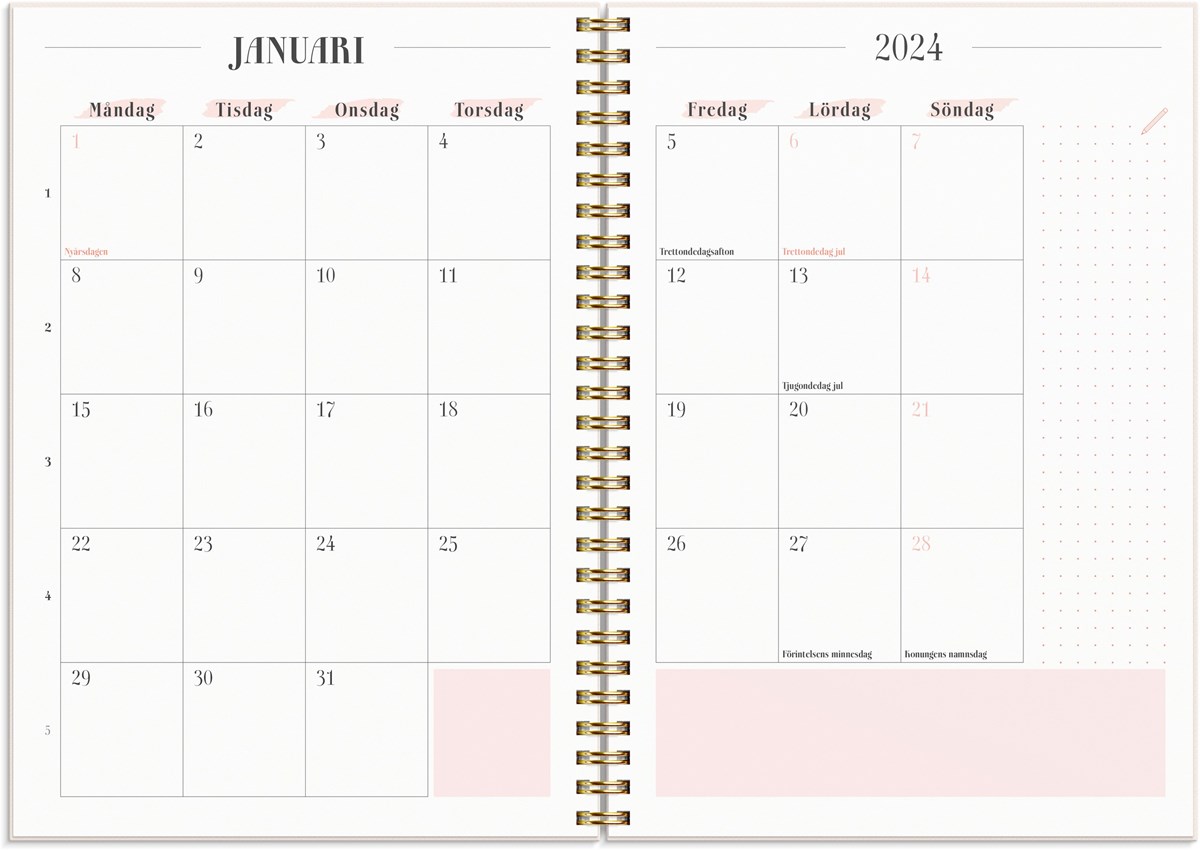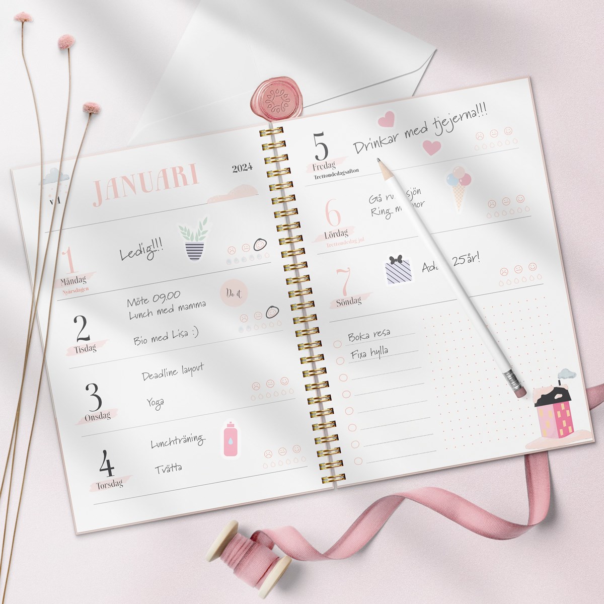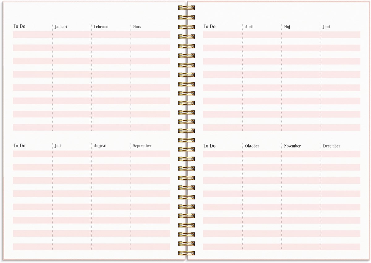 Nu finns vår populära Life Planner Pink med en horisontell, luftig layout där du får extra mycket utrymme för egna anteckningar och tankar. Sobra pastellfärger och vackra akvarellillustrationer gör planeringen lustfylld och peppande. Förutom vecko- och månadsplanering, to do-listor och inspirerande citat innehåller kalendern även verktyg där du loggar ditt mående. Låt Life Planner Pink bli en del av din vardag och känn stressen minska när du har allt samlat på ett och samma ställe!