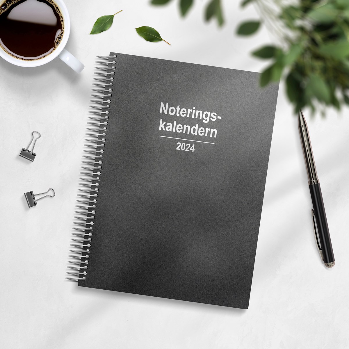 En kalender med vartannat uppslag veckokalender och vartannat anteckningssidor.