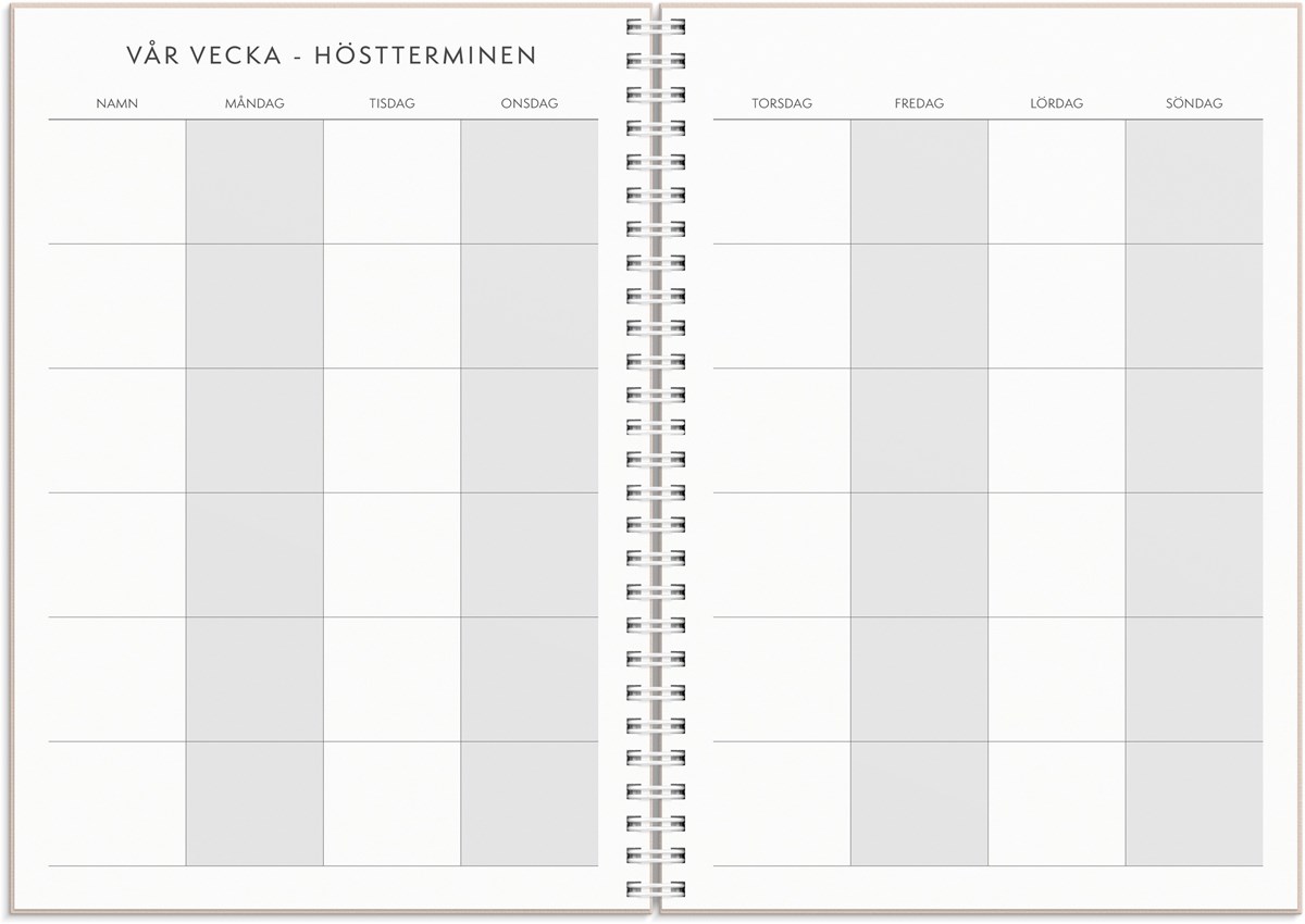 Behöver du hålla koll på fler än dig själv eller kanske olika projekt? Då är veckoplaneraren Planera mera den perfekta hjälpredan. I den här kalendern finns 5 extra kolumner för varje dag och du kan smidigt få en överblick över alla aktiviteter, möten och planer.