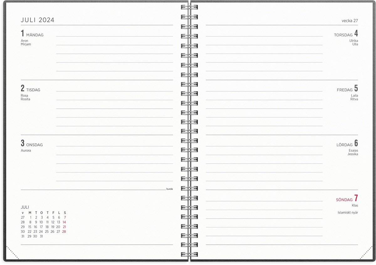 Klassiskt konstläderomslag som skyddar din kalender Fokus på planering med det lilla extra Gott om utrymme att planera både vardag och helg