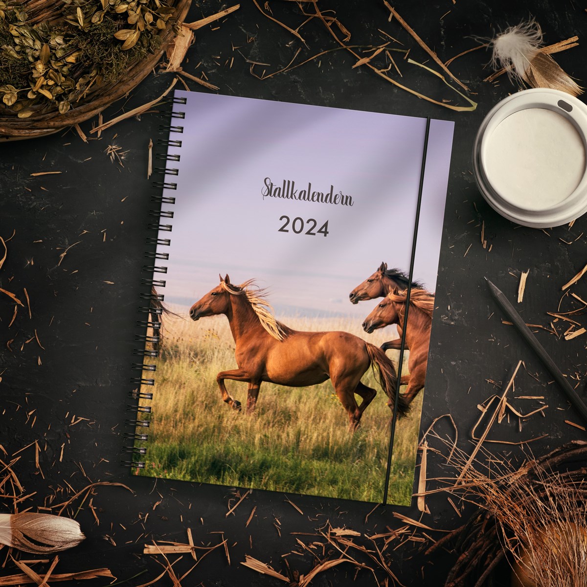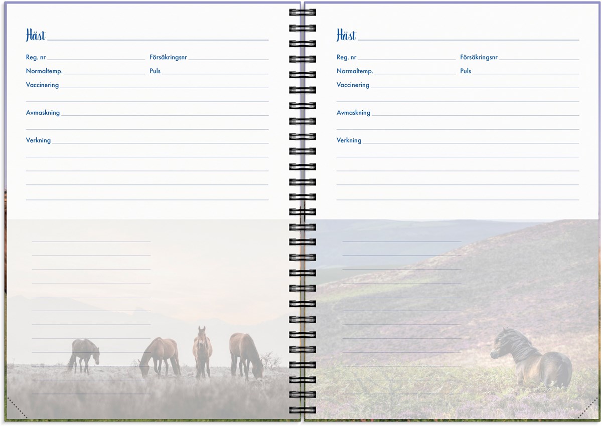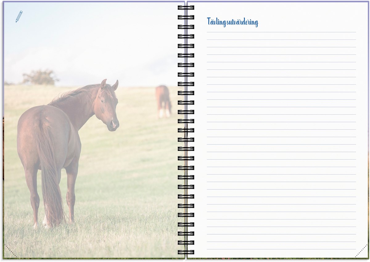 För dig som älskar hästar är en stallkalender det ultimata planeringsverktyget. Här får du utrymme att anteckna viktig information om dina hästar, kontaktuppgifter till hovslagare och veterinär, planera in tävlingar, utvärdera tävlingar och sätta mål för året. Vackra hästbilder och lekfull design gör planeringen rolig och hjälper dig att hitta tid för din passion i livet. Veckoplanering och månadsöversikt ger bra plats för kom ihåg och att göra upp planer.
