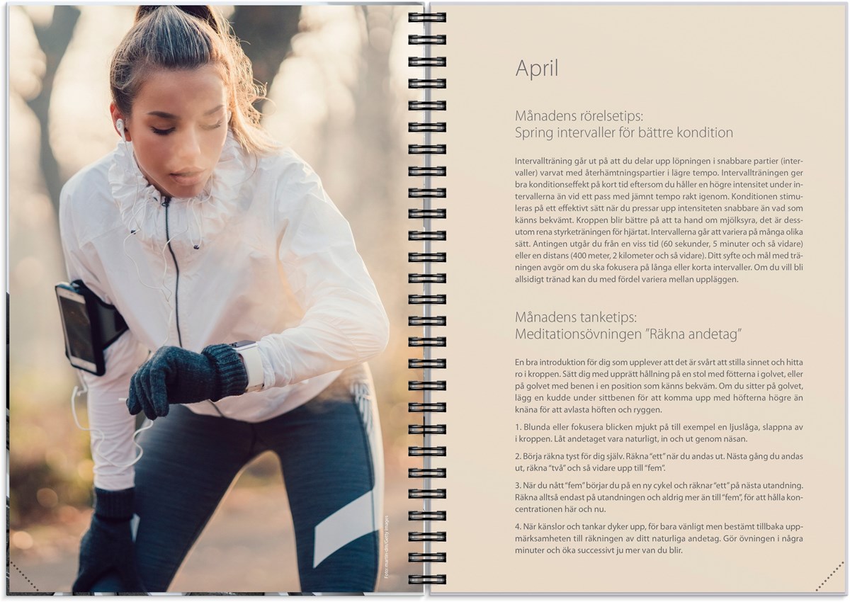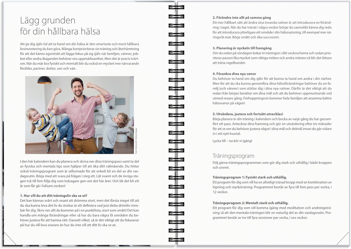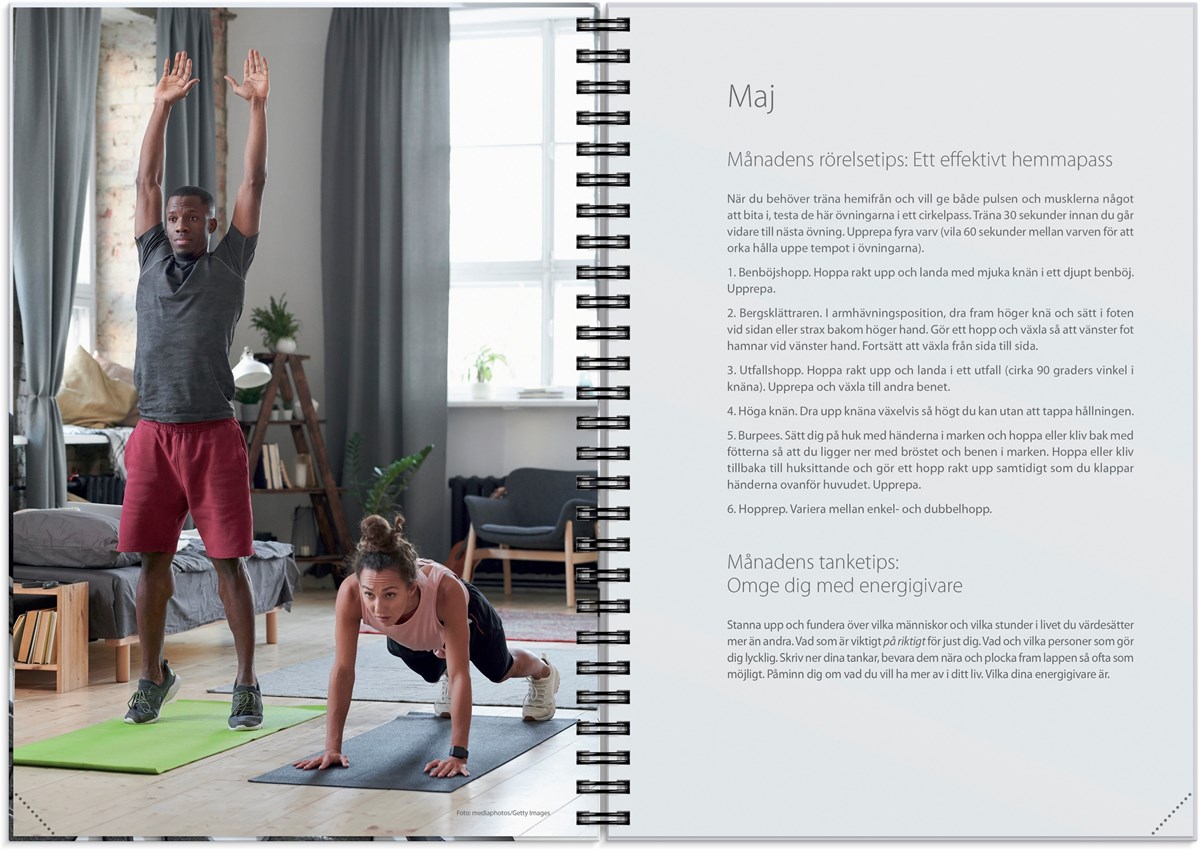 Att börja med nya, sunda vanor är enkelt, det svåra är att behålla dem. Med en smart planering ökar dina chanser att lyckas. I denna träningskalender hittar du ett program för dig som vill ha en allsidigt tränad kropp med en kombination av löpning och styrketräning och ett program för dig som vill komma igång med meditation och andningsträning så att den mentala träningen blir en naturlig del av din vardagsrutin. Båda programmen är signerade löpcoachen och PT:n Jenny Sunding. Hon ger också hälsosamma tips som håller inspirationen vid liv hela året. Det finns självklart också plats för veckoplanering, på varje uppslag finns dels en kalendersida, dels en aktivitetssida. Gör medvetna val för din hälsa och upptäck hur energin och orken i din vardag ökar!