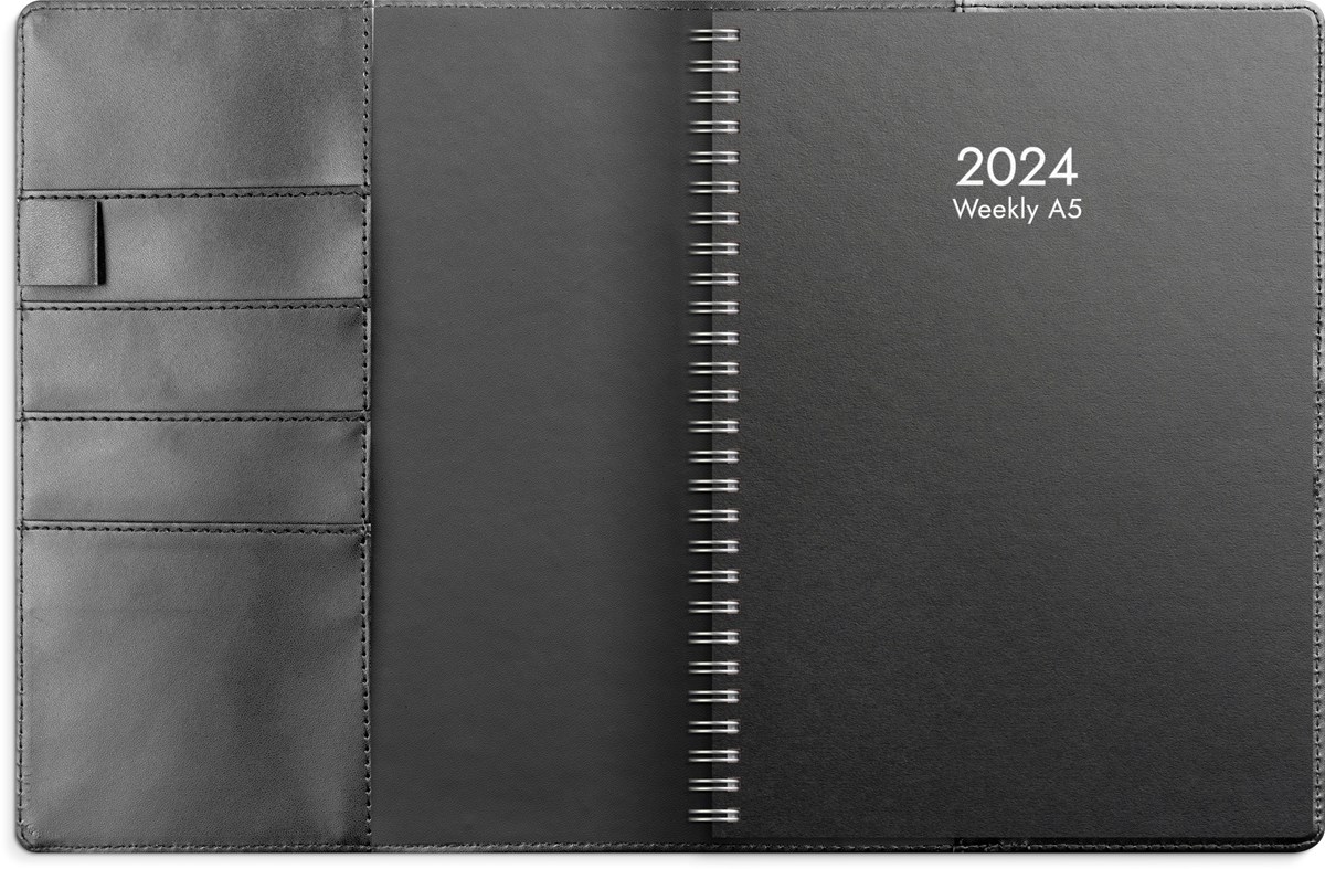 Kalender 2024 Weekly A5 svart konstläder