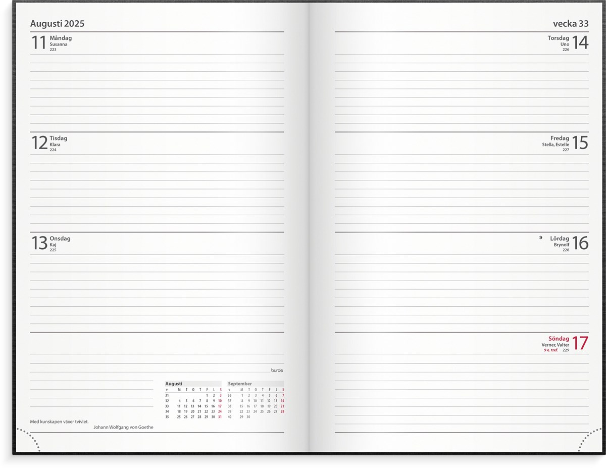 Kalender 2025 Dagbokskalender svart