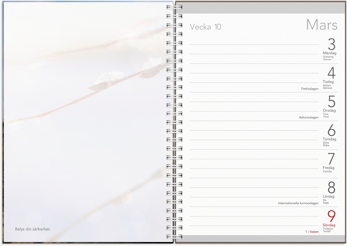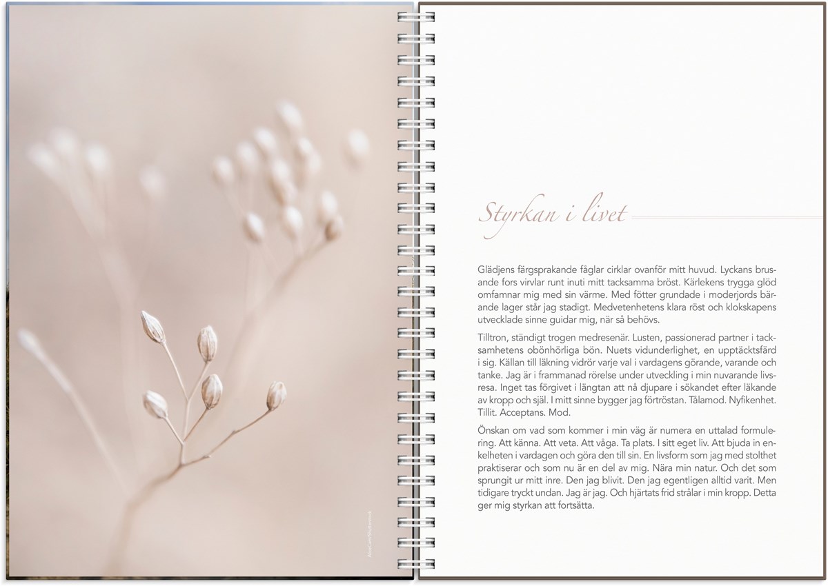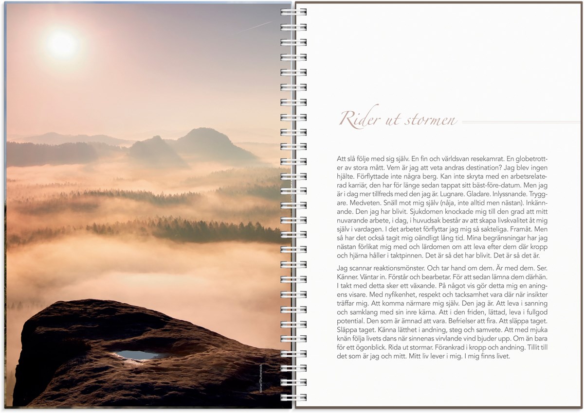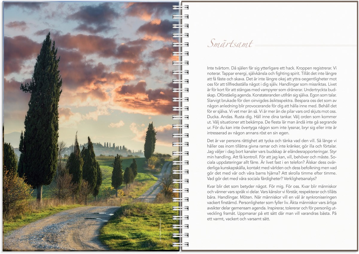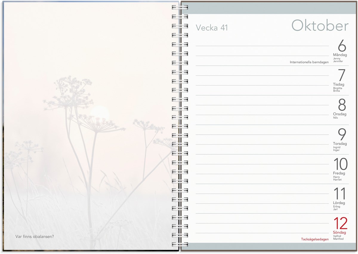 Önskar du mer balans i vardagen? Ett skönare liv är kalendern som hjälper och inspirerar till ett skönare och mer välmående liv, manar till eftertanke och gör samtidigt vardagen lite enklare. Vänster sida på varje uppslag har gott om plats för anteckningar och den innehåller natursköna bilder och att-göra och inspirerande citat.