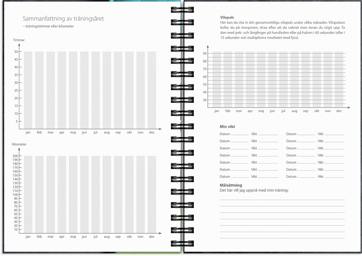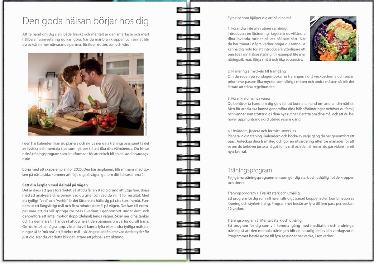 Att börja med nya, sunda vanor är enkelt, det svåra är att behålla dem. Med en smart planering ökar dina chanser att lyckas. I Träningskalendern hittar du färdiga träningsprogram, signerade löpcoachen Jenny Sunding och hälsosamma tips som håller inspirationen vid liv hela året. Gör medvetna val för din hälsa och upptäck hur energin och orken i din vardag ökar!