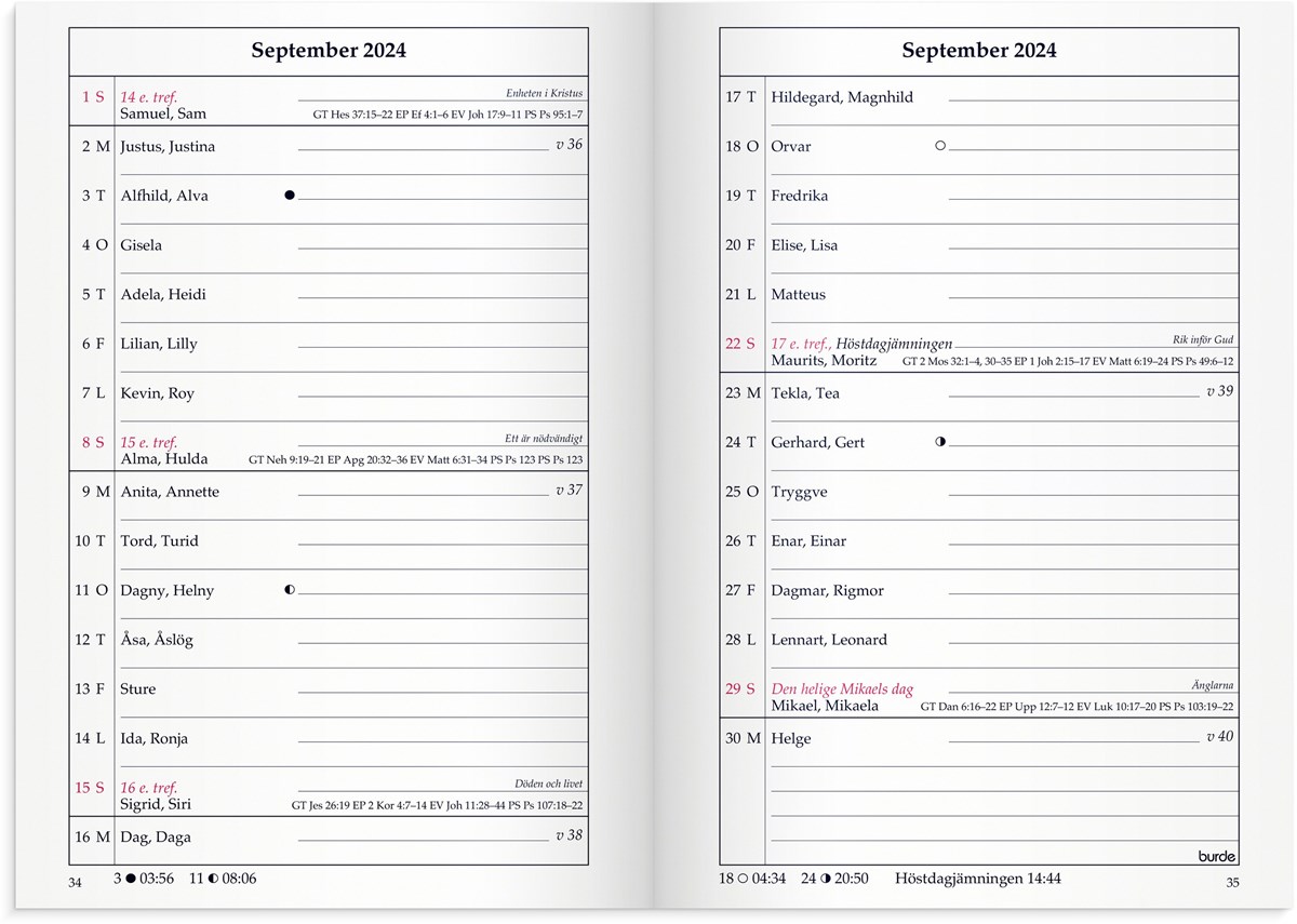 Kalender 2024 från Burde. Format: A6. Layout: Månad/Uppslag. Kalendarium: 2024-01-01 - 2024-12-31. Omslag: Kartong. Häftad. Innehåll: Årsöversikter. Antal sidor: 80. Miljöinformation: FSC.