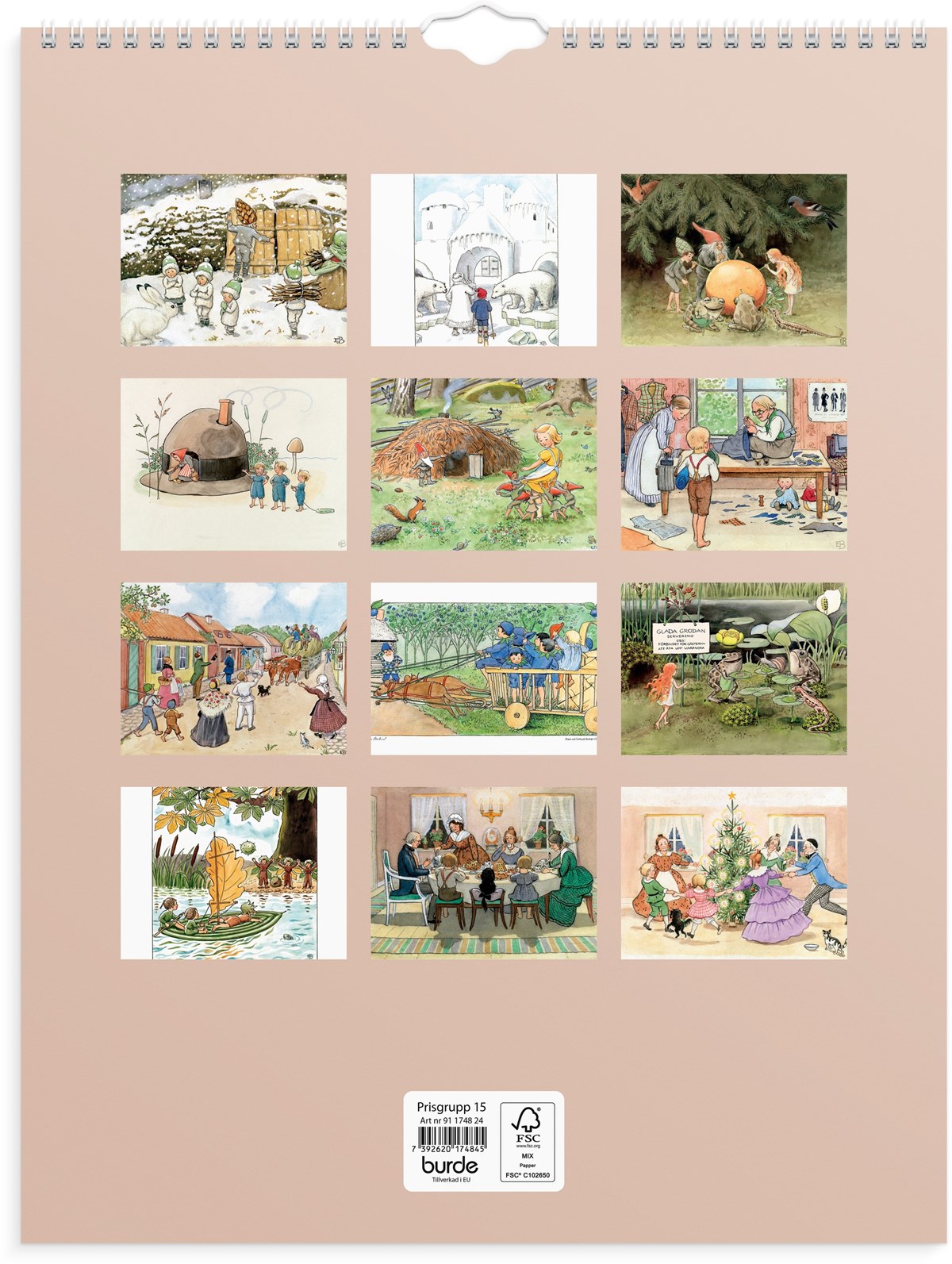 Väggkalender med bilder från välkända barnböcker av Elsa Beskow.