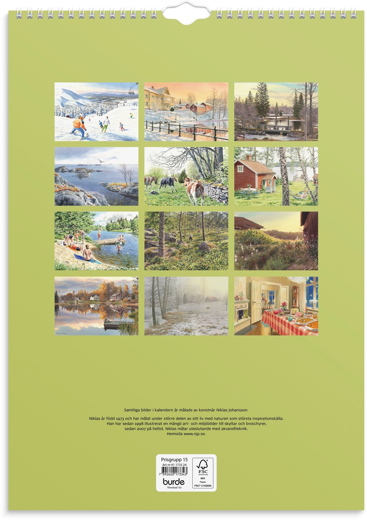 Väggkalender med vackra årstidsmotiv från Sverige, målade av Niklas Johansson.