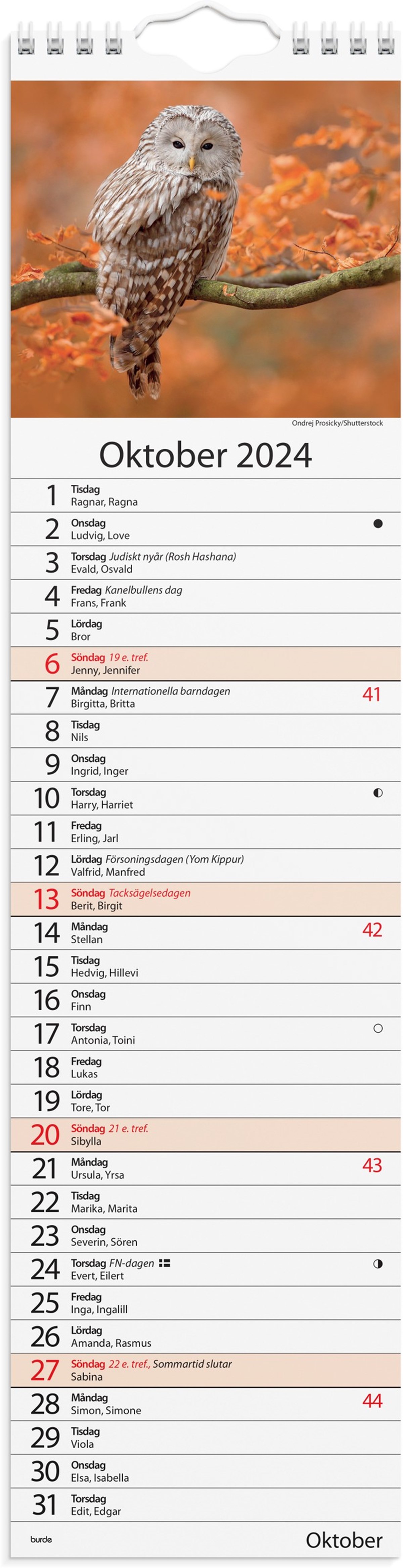 Väggkalender 2024 från Burde. Format: 110x430 mm. Layout: Månad/Blad. Kalendarium: 2024-01-01 - 2024-12-31. Spiralbunden. Antal sidor: 12. Miljöinformation: FSC.
