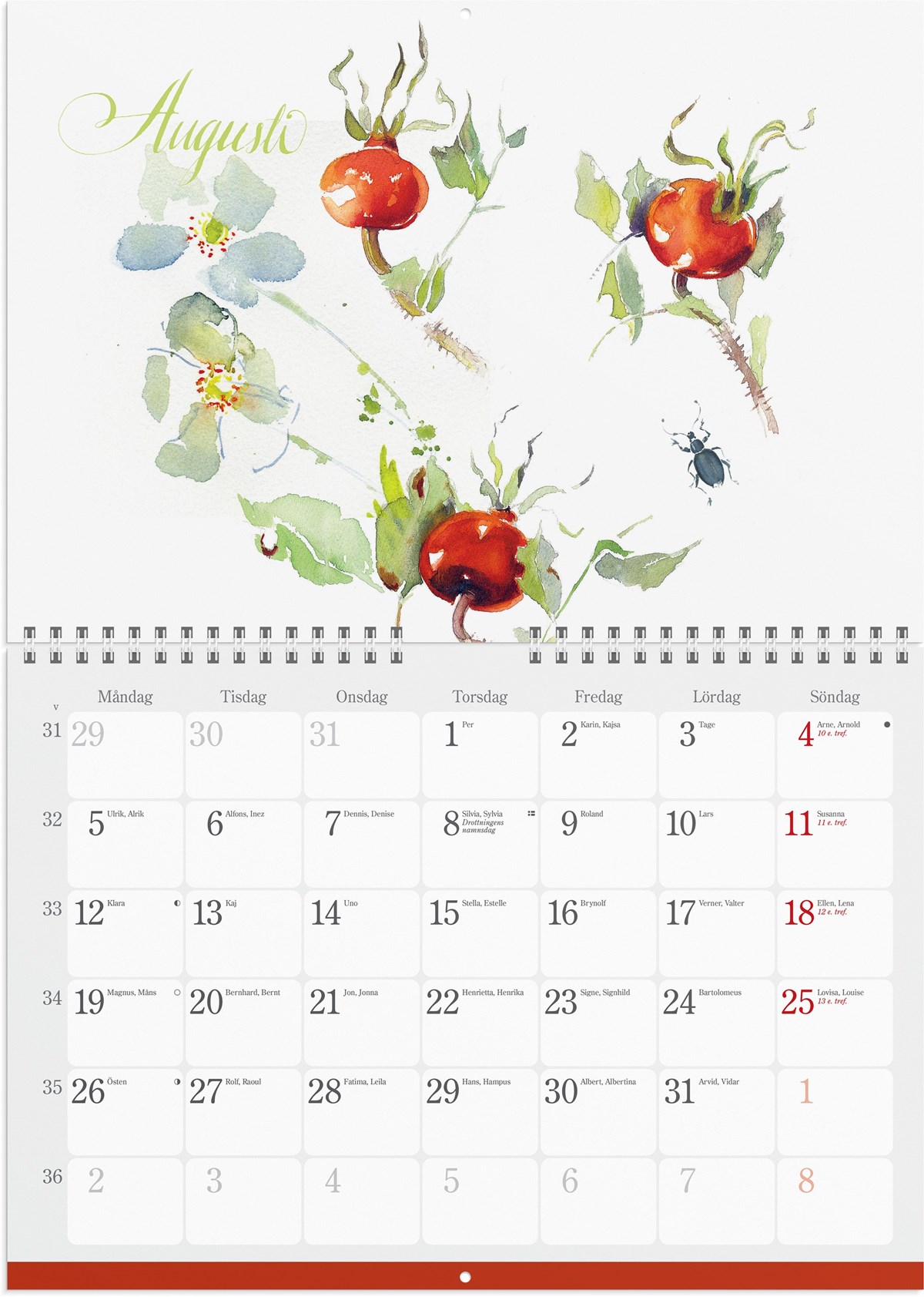 Väggkalender med vackra akvarellmålningar med naturmotiv, målade av Birgitta Thalberg.