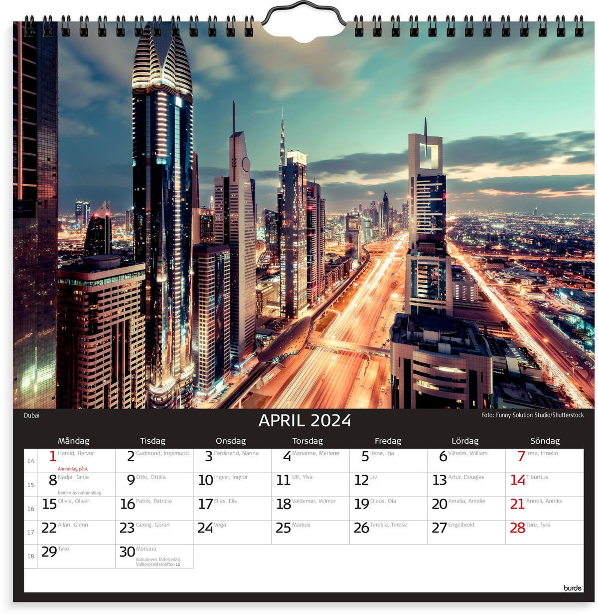 Väggkalender 2024 från Burde. Format: 300x300 mm. Layout: Månad/Blad. Kalendarium: 2024-01-01 - 2024-12-31. Spiralbunden. Antal sidor: 12. Miljöinformation: FSC.