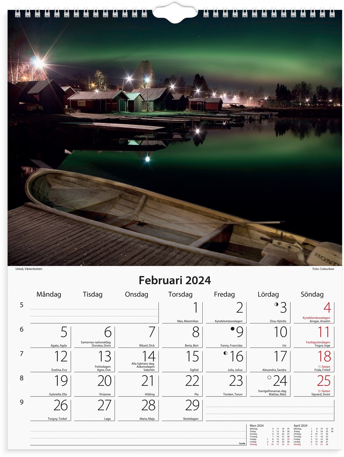 Väggkalender 2024 från Burde. Format: 295x390 mm. Layout: Månad/Blad. Kalendarium: 2024-01-01 - 2024-12-31. Spiralbunden. Antal sidor: 12. Miljöinformation: FSC.
