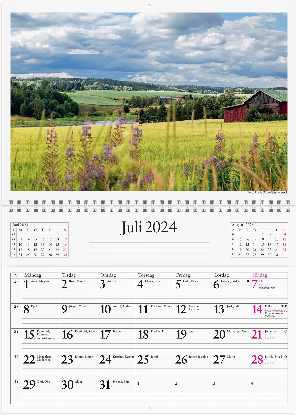 Väggkalender 2024 från Burde. Format: 250x176 mm. Layout: Månad/Blad. Kalendarium: 2024-01-01 - 2024-12-31. Spiralbunden. Antal sidor: 12. Miljöinformation: FSC.