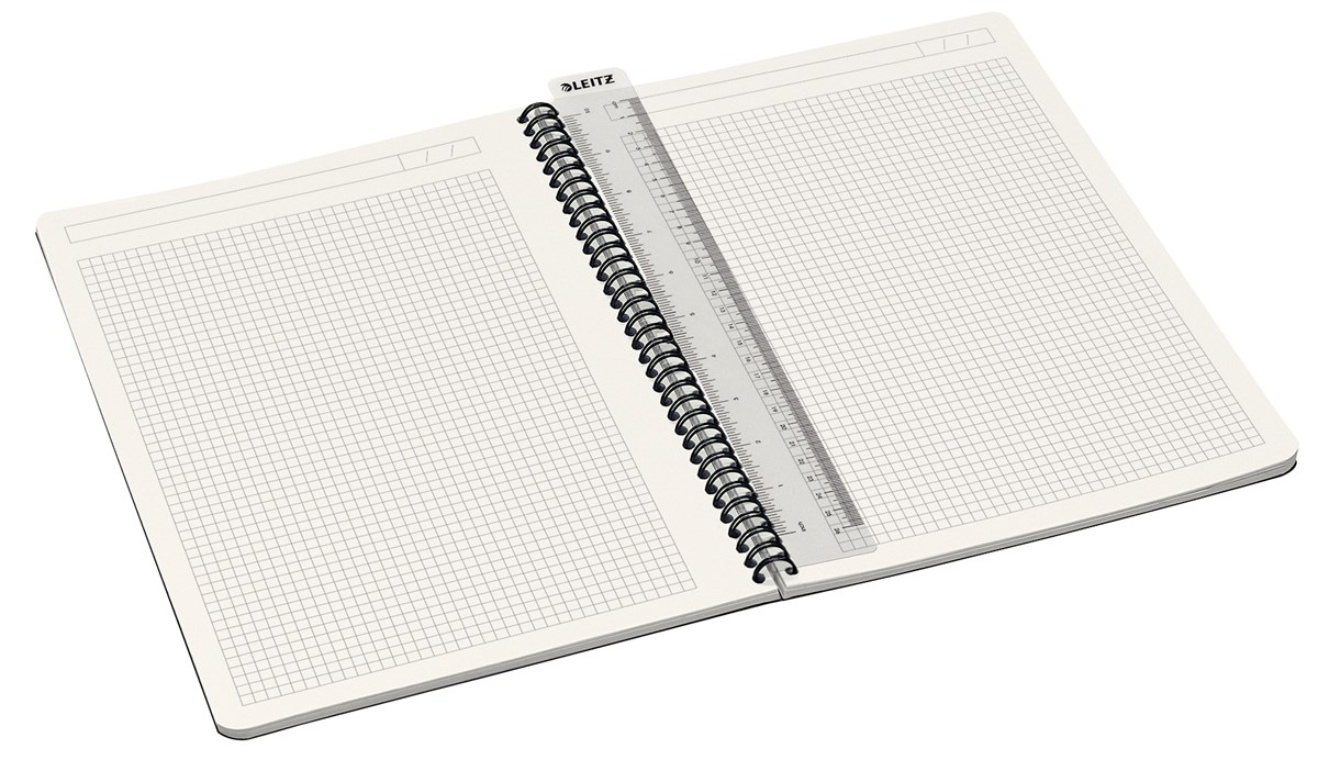 Spiralbundet block med omslag i tålig PP. 90 g papper med hög opacitet och med en speciell yta som ger en bra skrivyta utan kladd. Inramad linjering med titel och datumlinje i ovankant för bättre organisering av dina anteckningar. Löstagbar linjal som även kan användas som bokmärke. 90 linjerade blad. Ohålat. A4-format.