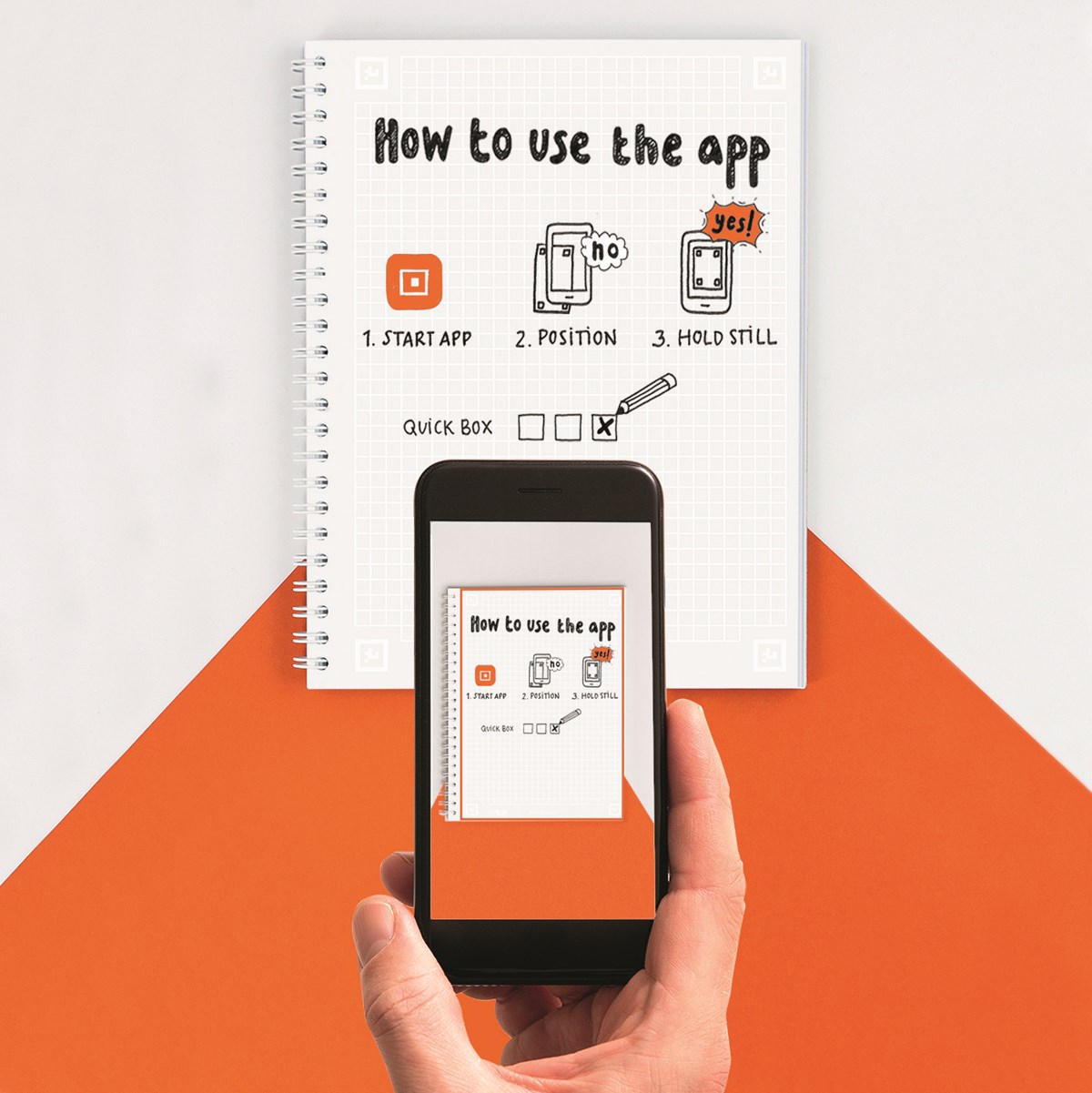 Ett anteckningsblock med vita linjer mot grå bakgrund. De vita linjerna ger stöd och lyfter tydligt fram anteckningarna. Lätt att dela digitalt med Whitelines kostnadsfria app. 60 blad. 80 g papper.