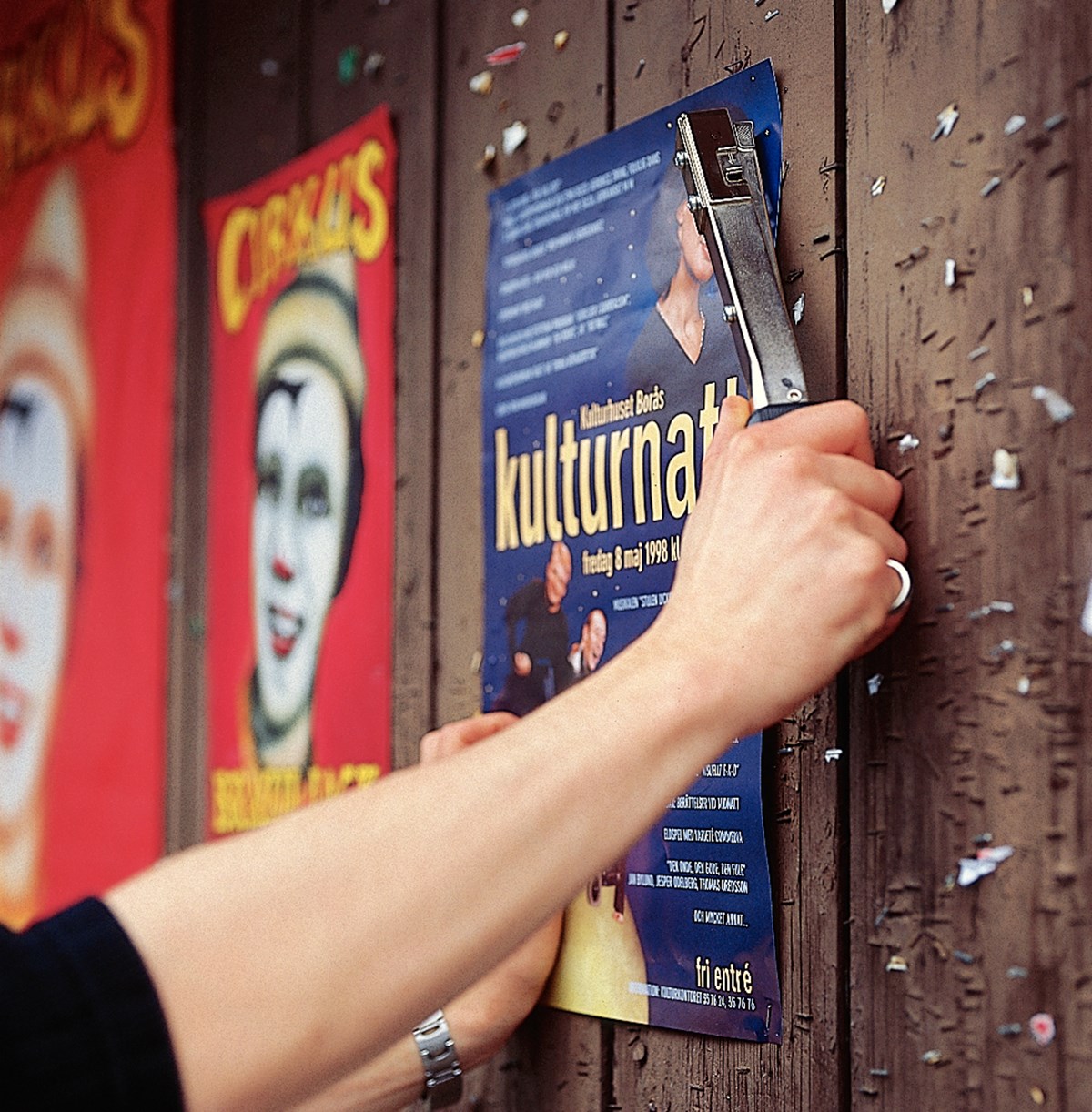 Kraftfullt proffsverktyg för fastsättning av textilier, canvas, nät, läder, affischer m.m. Lång livslängd – klarar mer än 100 000 häftningar. Reglerbar slagstyrka. Maxläge används för långa klammer eller hårda material. Rekylfri. Förnicklad. 13-klammer, kapacitet 6-14 mm. Svensktillverkad. 5 års garanti.