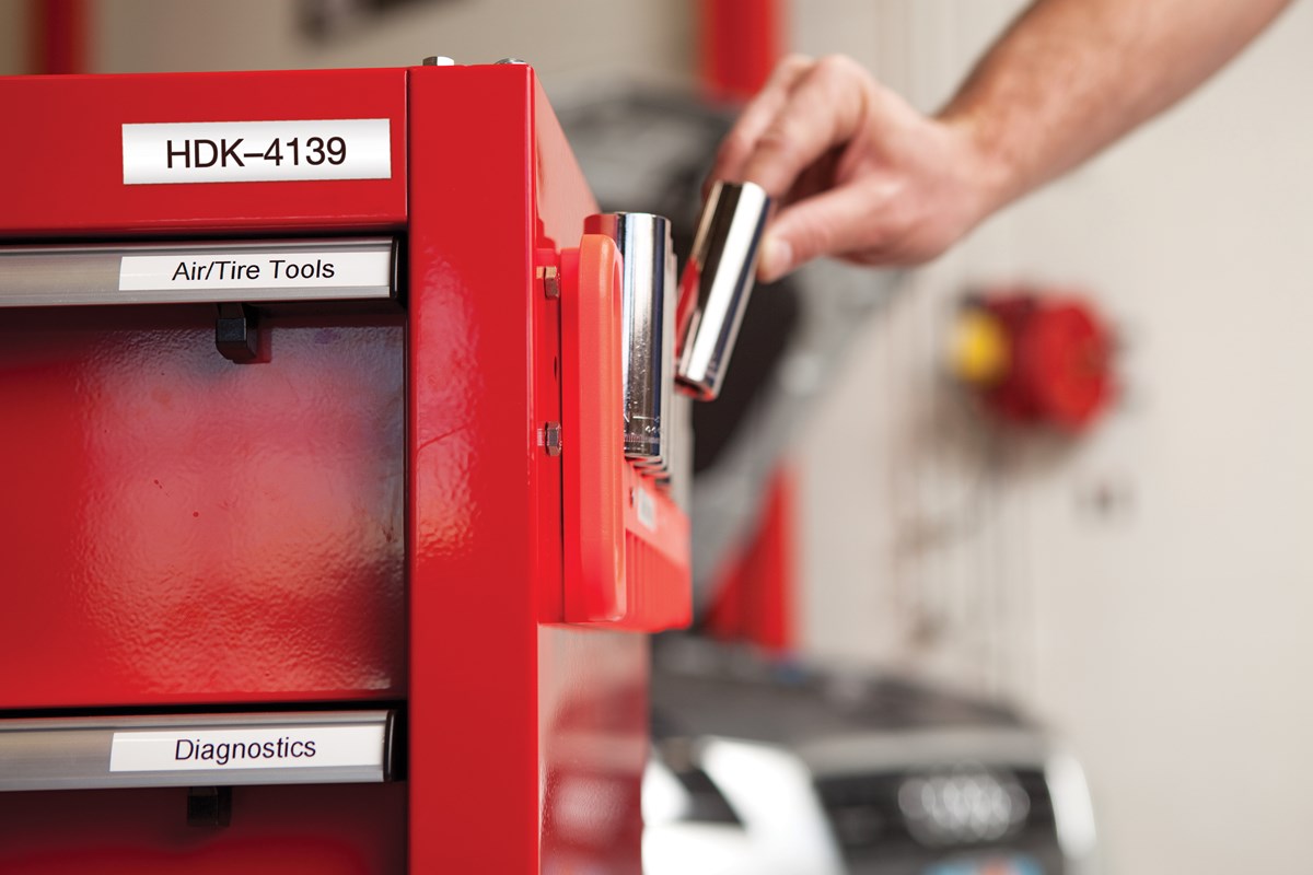 För märkning av plana ytor t.ex. paneler, planskivor, hyllor, lådor, balkar m.m. Längd: 9,1 m. Svart text/vit tejp.
