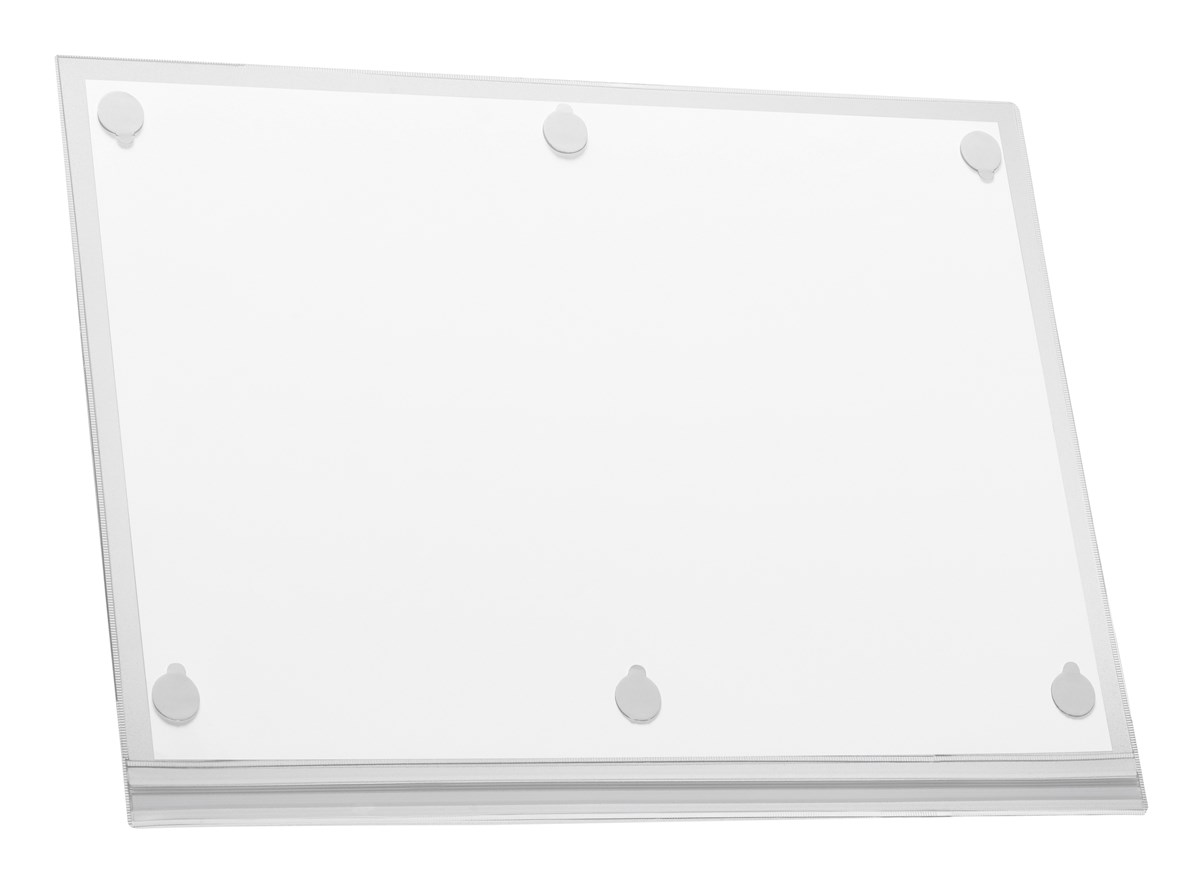 Vattentåliga plastfickor för användning utomhus – enkla att byta inlagan i Väderbeständiga och vattentäta plastfickor avsedda för information som ska visas utomhus där det finns risk för skvättande vatten t.ex. vid handelsträdgårdar, poolområden, grindar och anslagstavlor. Tål sol, hög fuktighet, dagg, regn och skvättande vatten. Plastfickorna är gjorda av transparent, UV-stabil och väderbeständig plast med antireflekterande effekt. Vattentät tryckförsegling skyddar mot väta. Testade enligt IPX5 standard. Tillverkade av återvunnen Blue Angel-certifierad plast. Kan användas i stående eller liggande format. 2 ark, som fickan rymmer, ingår. Självhäftande, fästes med de medföljande fästkuddarna som kan tas bort utan att lämna rester. 5 st/förp.