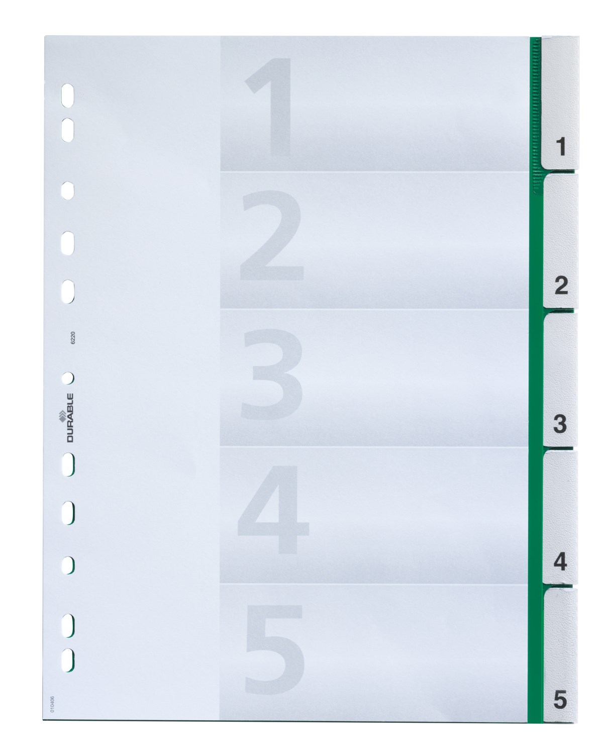 Grönt plastregister med extra hög slitstyrka med svetsade flikar av instickstyp. Plasten har en smutsavvisande yta. Till varje register medföljer försättsblad samt neutrala och förtryckta instick. Mallar för att skriva ut snygga försättsblad finns på www.duraprint.se.