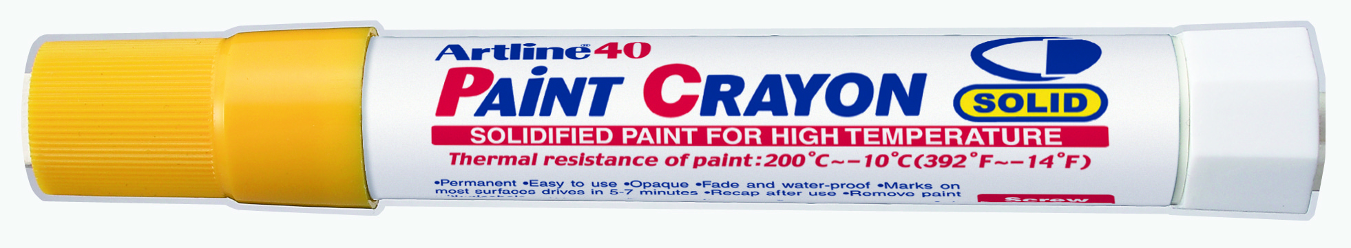 Pastapenna med kraftigt täckande färg. Permanent, färgbeständig och vattenfast. Lätt att använda. Skriver i värme upp till 200 grader och i kyla ner till -10 grader. För märkning på de flesta underlag. Torkar på 5–7 minuter. Fungerar även på ljusa, mörka, smutsiga och feta ytor. Ljusäkta, tål nötning och är väderbeständig. 12 st/förp.