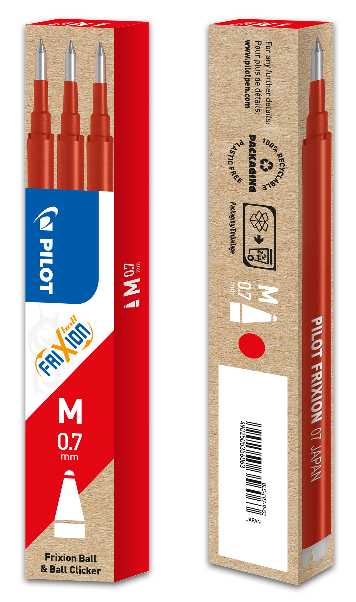 Alla Frixion-pennor är påfyllnadsbara, vilket betyder att du inte behöver köpa en ny penna när bläcket är slut. Raderbart bläck. Passar Pilot Frixion Clicker och Pilot LX. 3 st/förp.