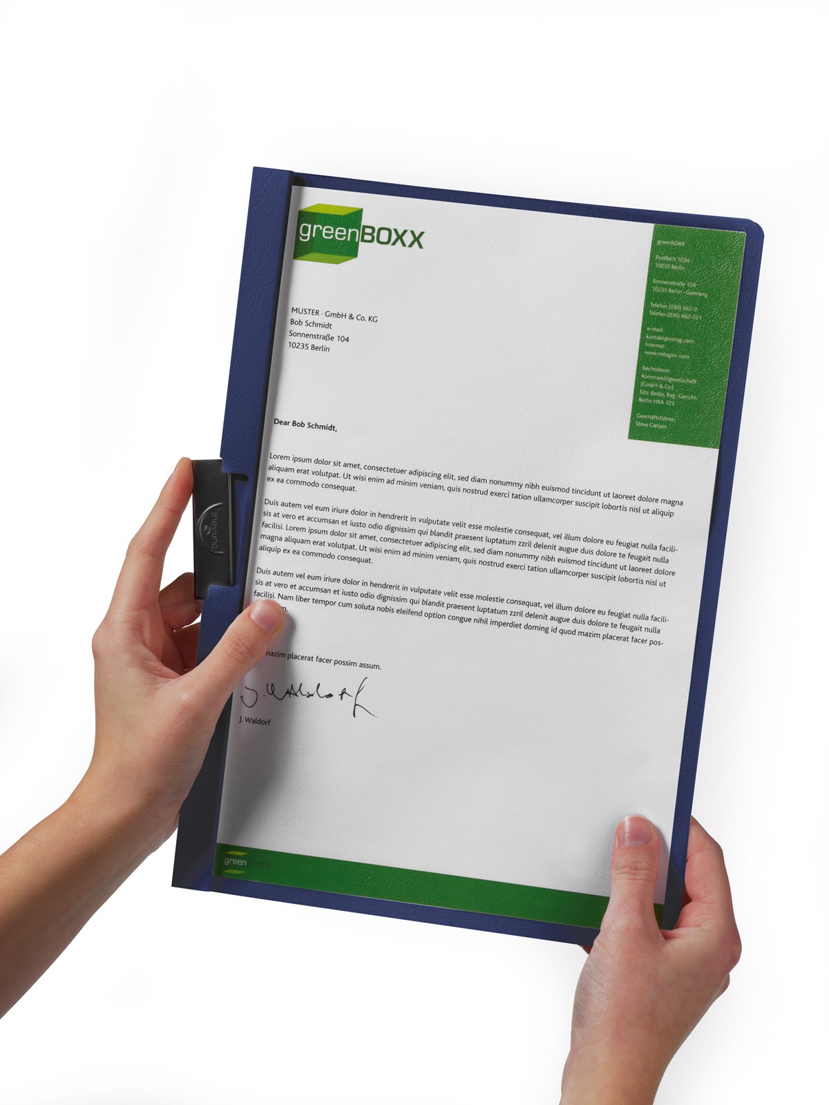 Klämmapp i A4-format med transparent framsida och färgad baksida. Metallklämma i rygg för fasthållning av dokument som inte behöver hålas. 5 års garanti på klämman. 25 st/förp.
