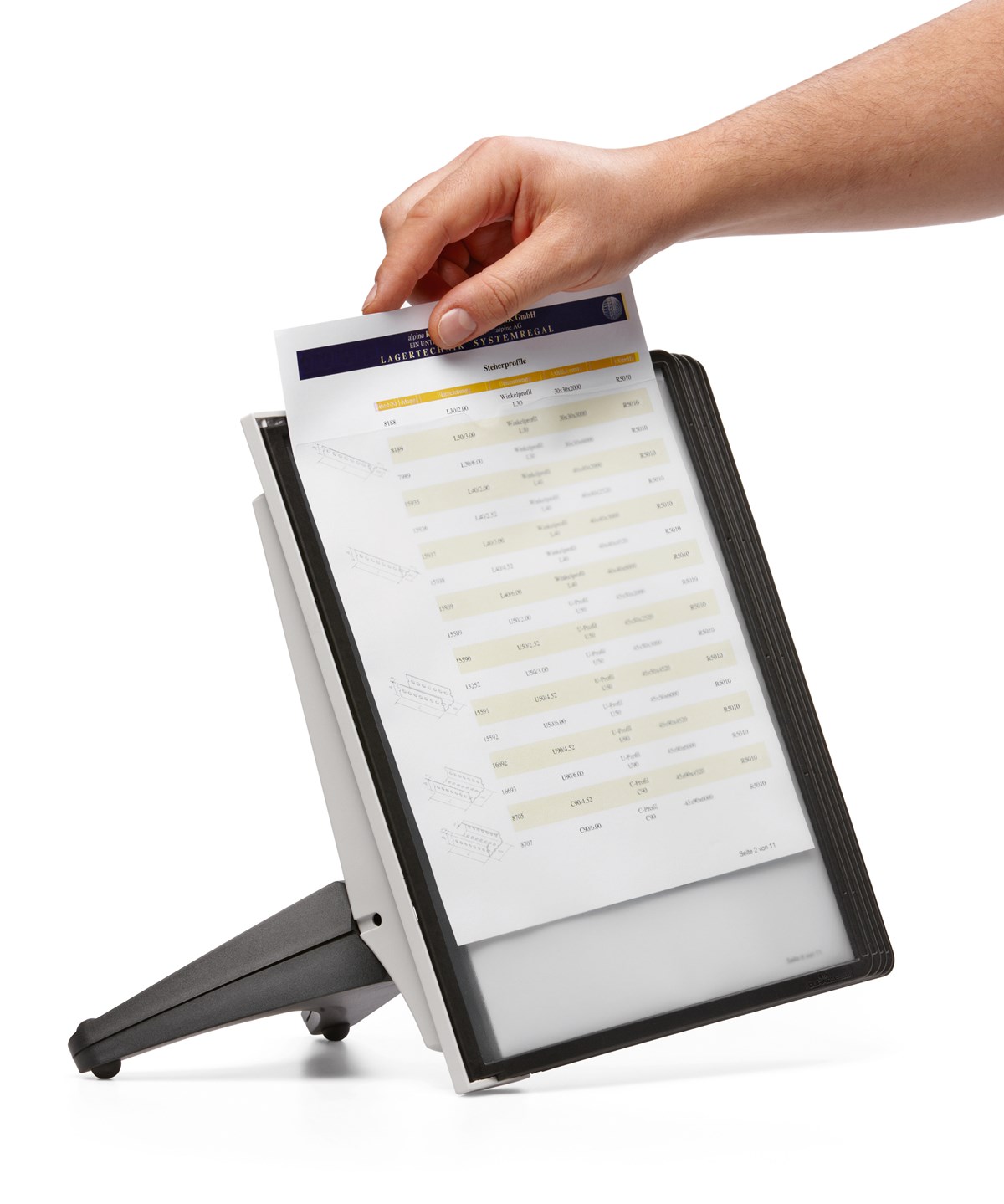 Platsbesparande bordsställ med 5 svarta paneler för A4 i polypropylenplast. Utmärkt för det lilla kontoret eller hemmakontoret. Smidig och funktionell design. 5 års garanti.