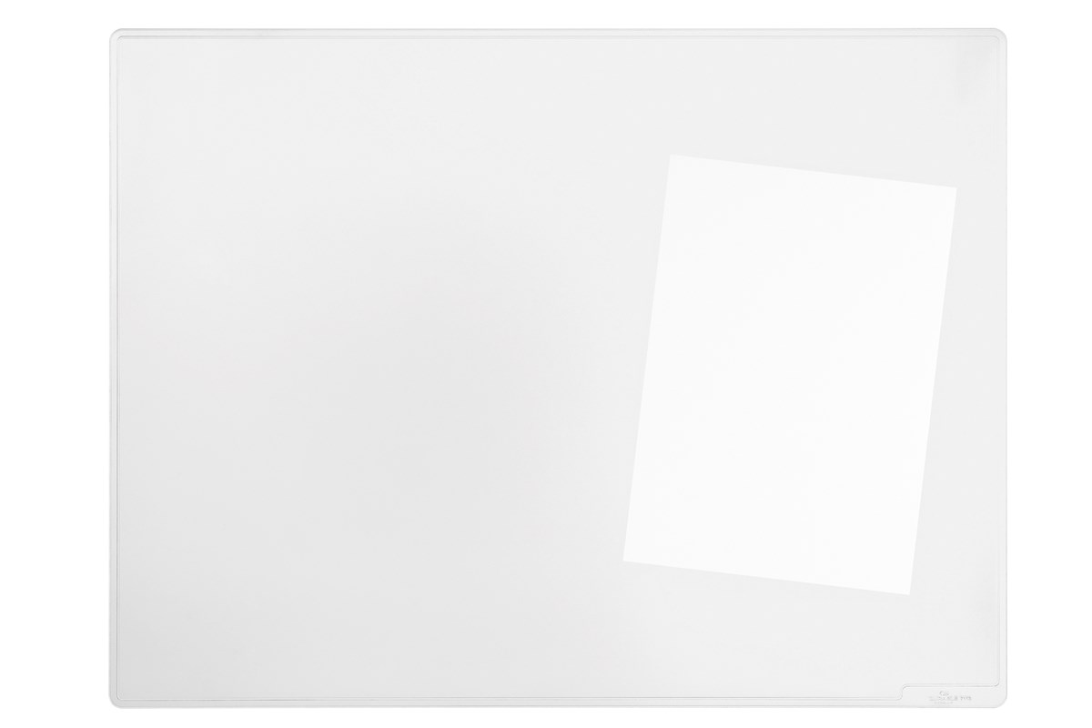 Skrivvänligt med matt/transparent specialplast med antiglidyta. Skyddar men döljer inte ett vackert skrivbord. Tillverkad i PVC.